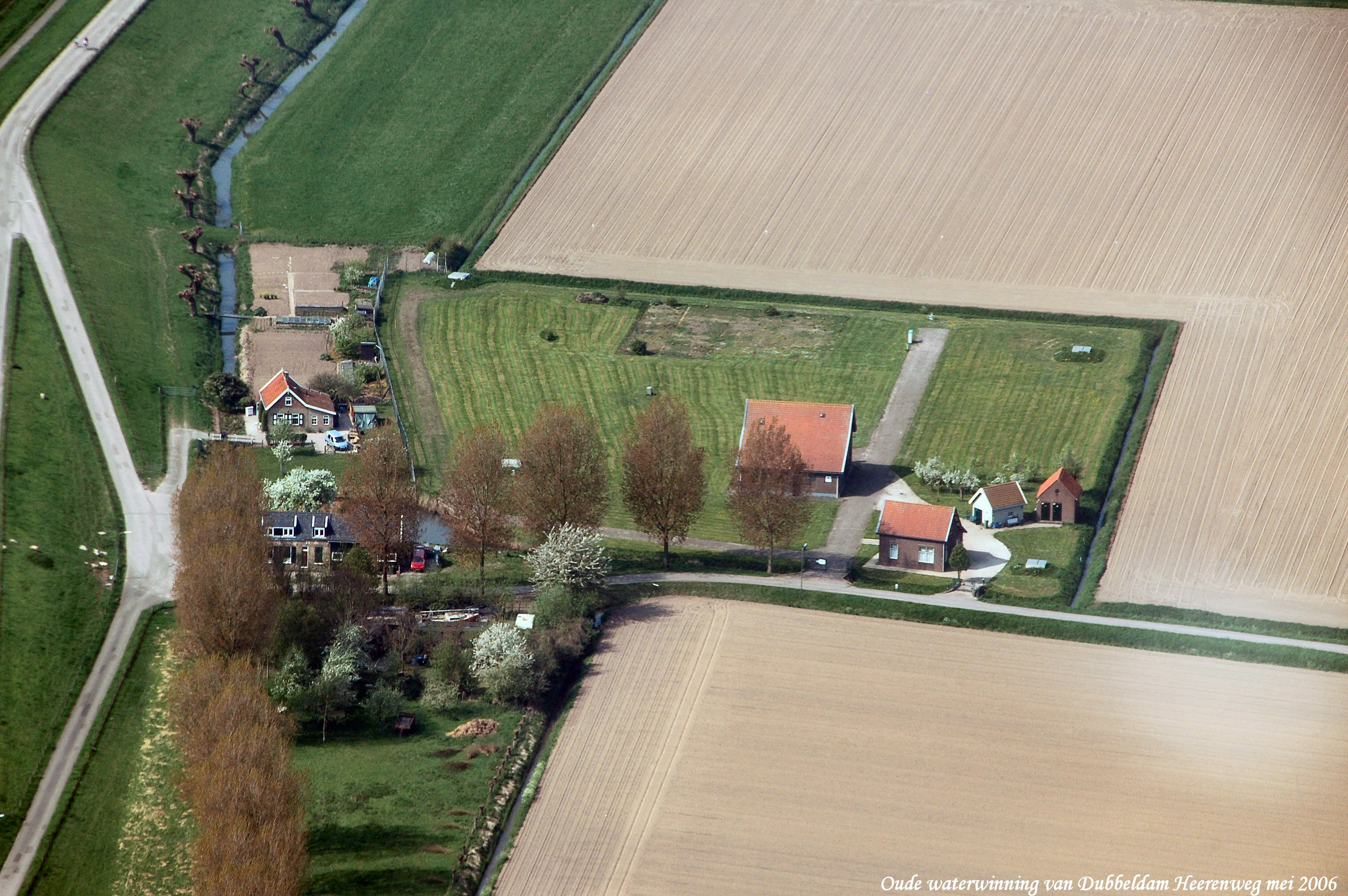Heerenweg met het voormalig waterwinning bedrijf van Dubbeldam. links boven is de Zeedijk. Aloijsepolder. gezien in Zuid/Westelijke richting.