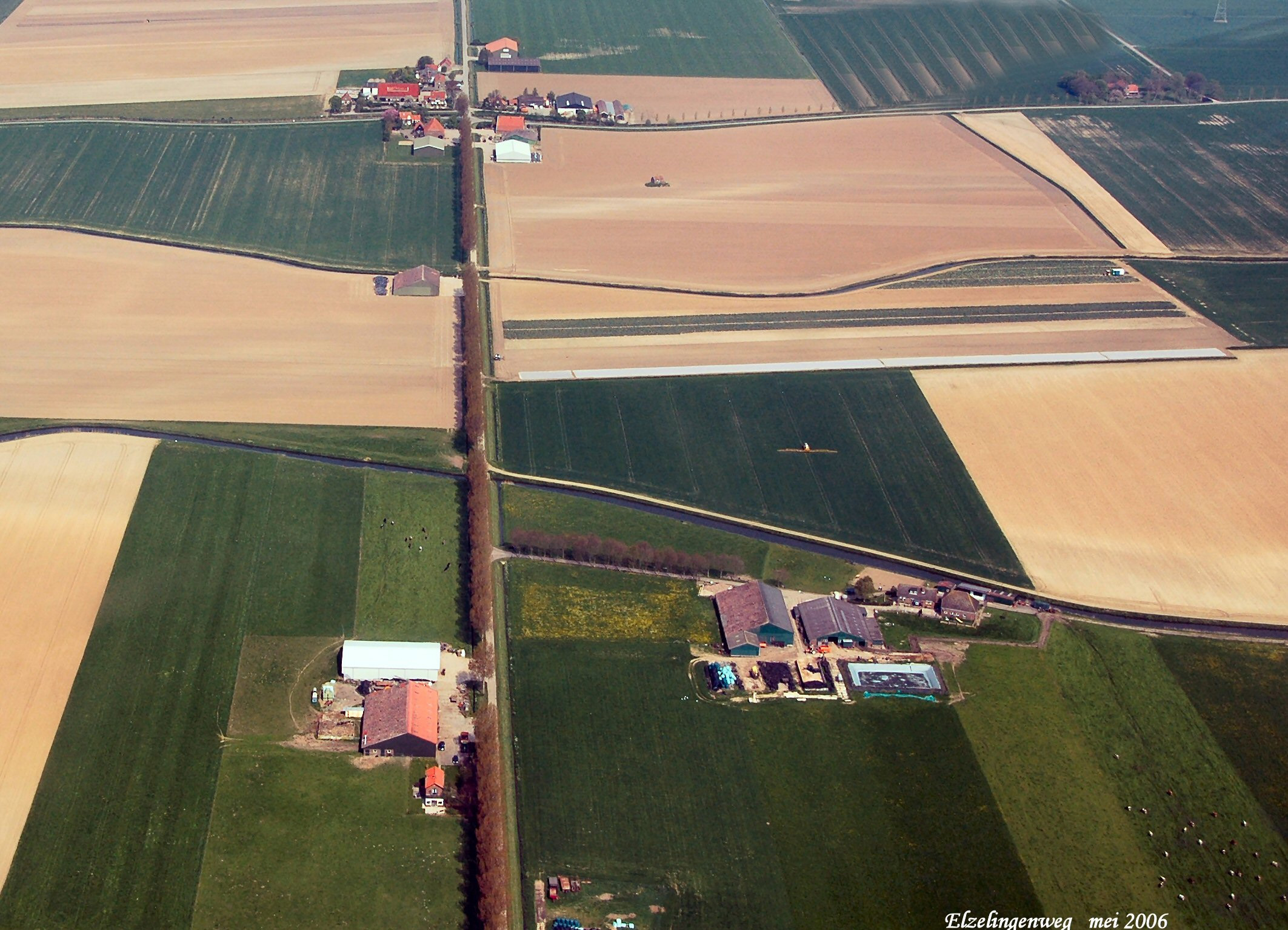 Van Elzelingenweg, rechts is de Elshoeve met boven is Hoeve De Biesbosch-Middenhoeve-Bij den Peppel-en Luctor et Emergo. gezien in Noordelijke richting.