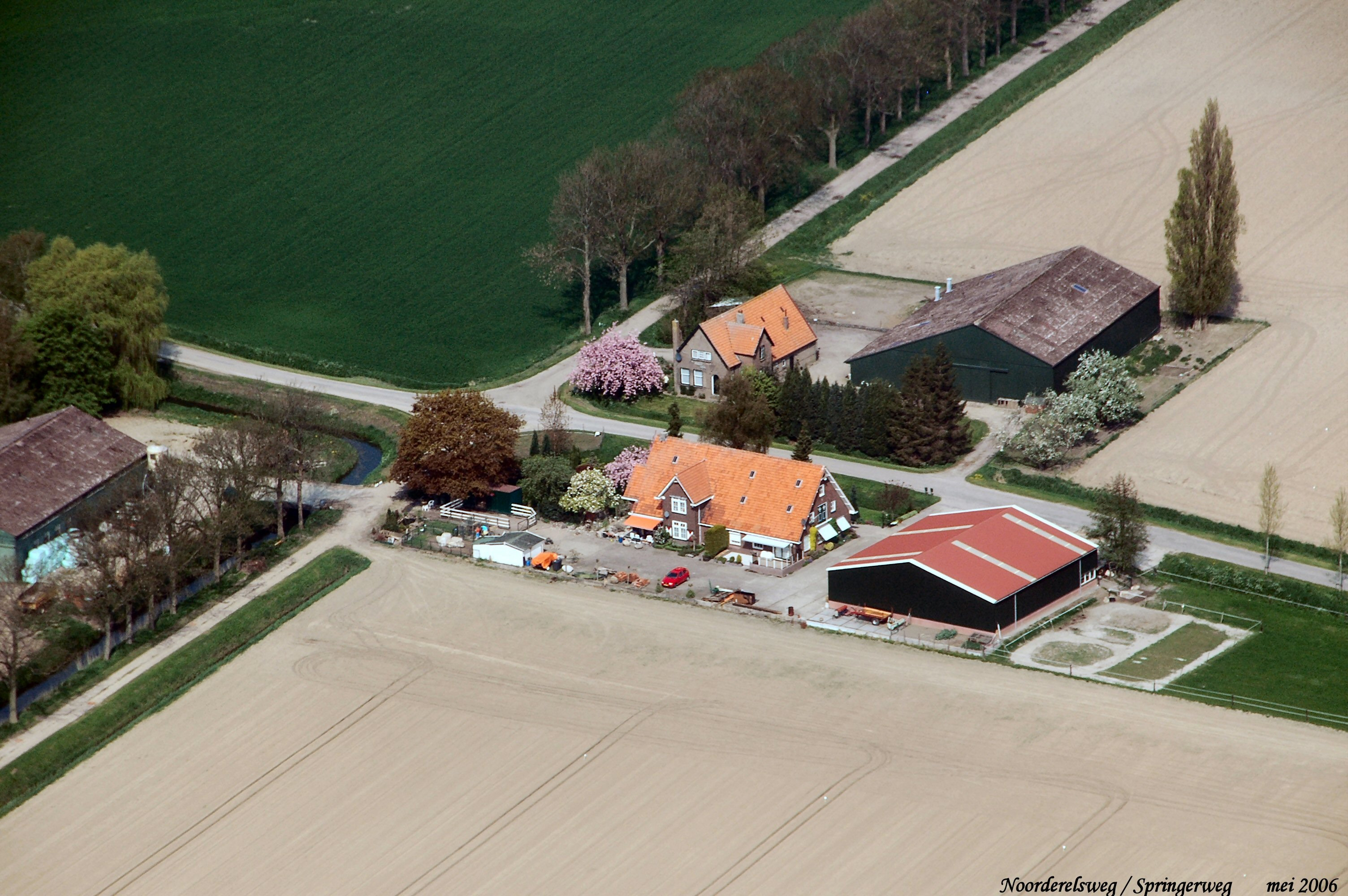 Van links naar rechts is de Noorderelsweg met de Springerweg haaks er op. boven is de Springerhoeve en onder de Gheenemanshoeve. gezien in Noord/Westelijke richting.