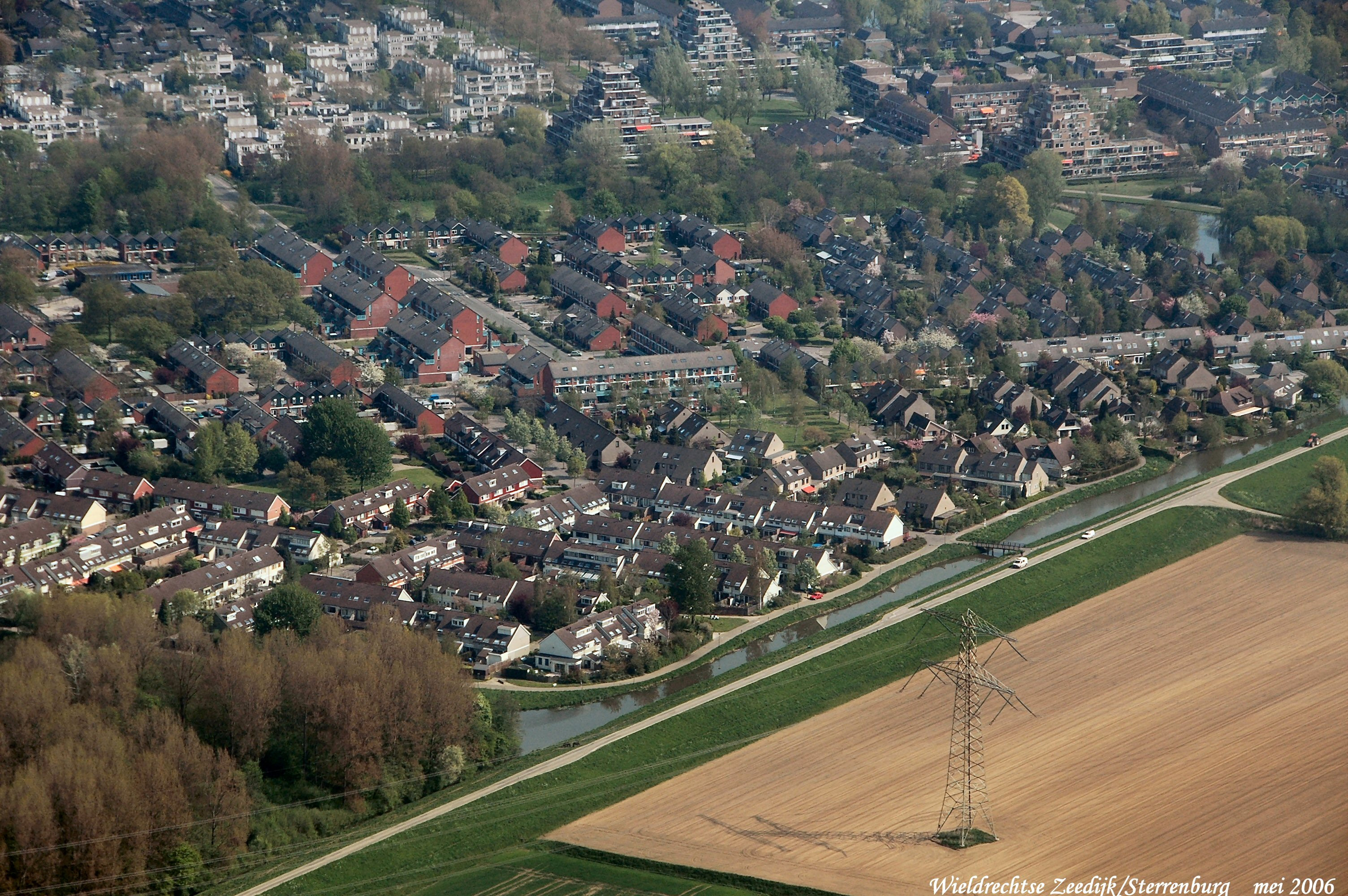 Onder is de Wieldrechtse Zeedijk met Sterrenburg 3 er boven gezien in Noordelijke richting.