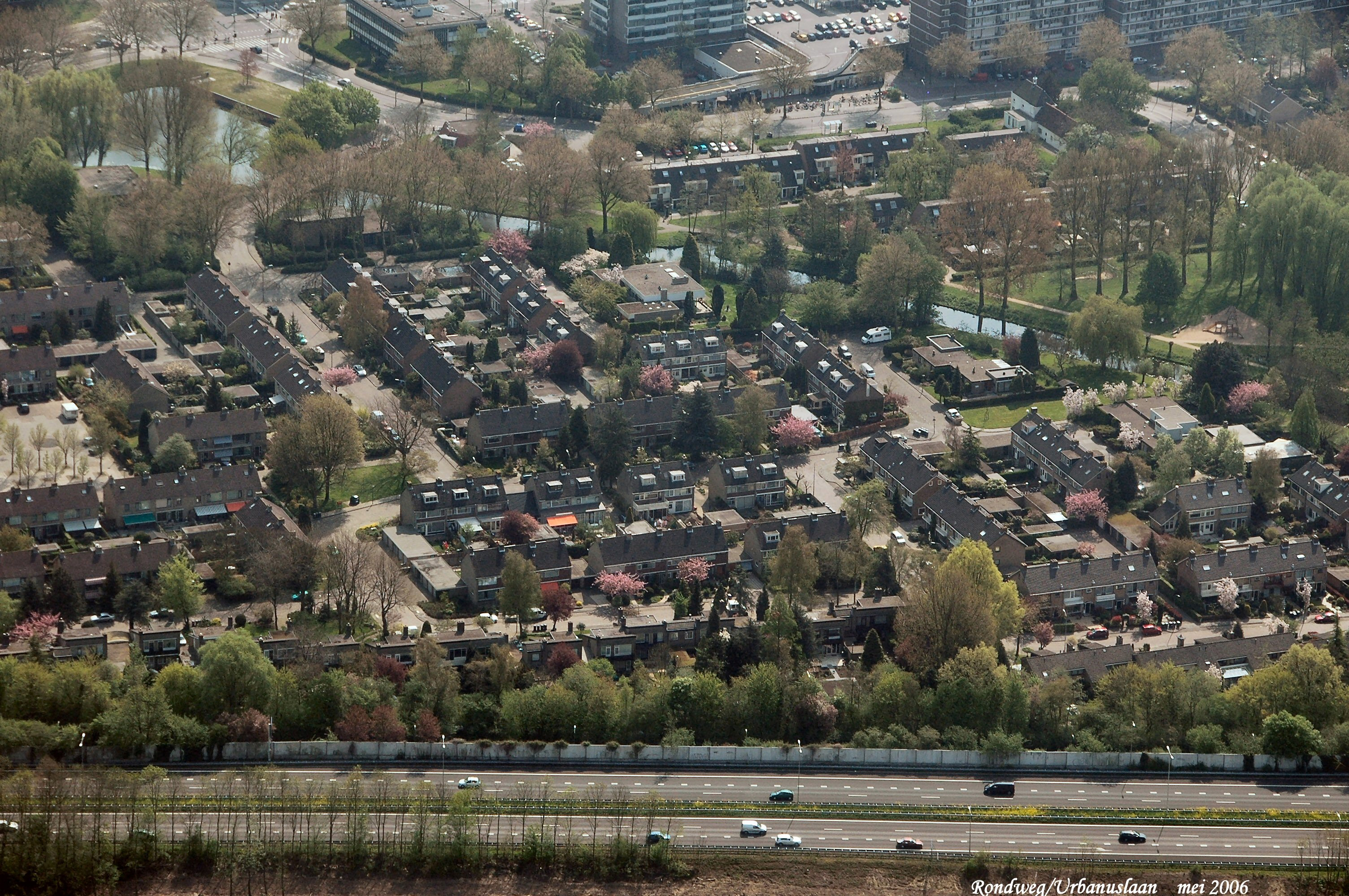Onder is de Rondweg met Uranuslaan in Sterrenburg 1 er boven. Van links naar rechts is de Zuidkil. met mid.boven een stukje van winkelcentrum Sterrenburg gezien in Oostelijke richting.