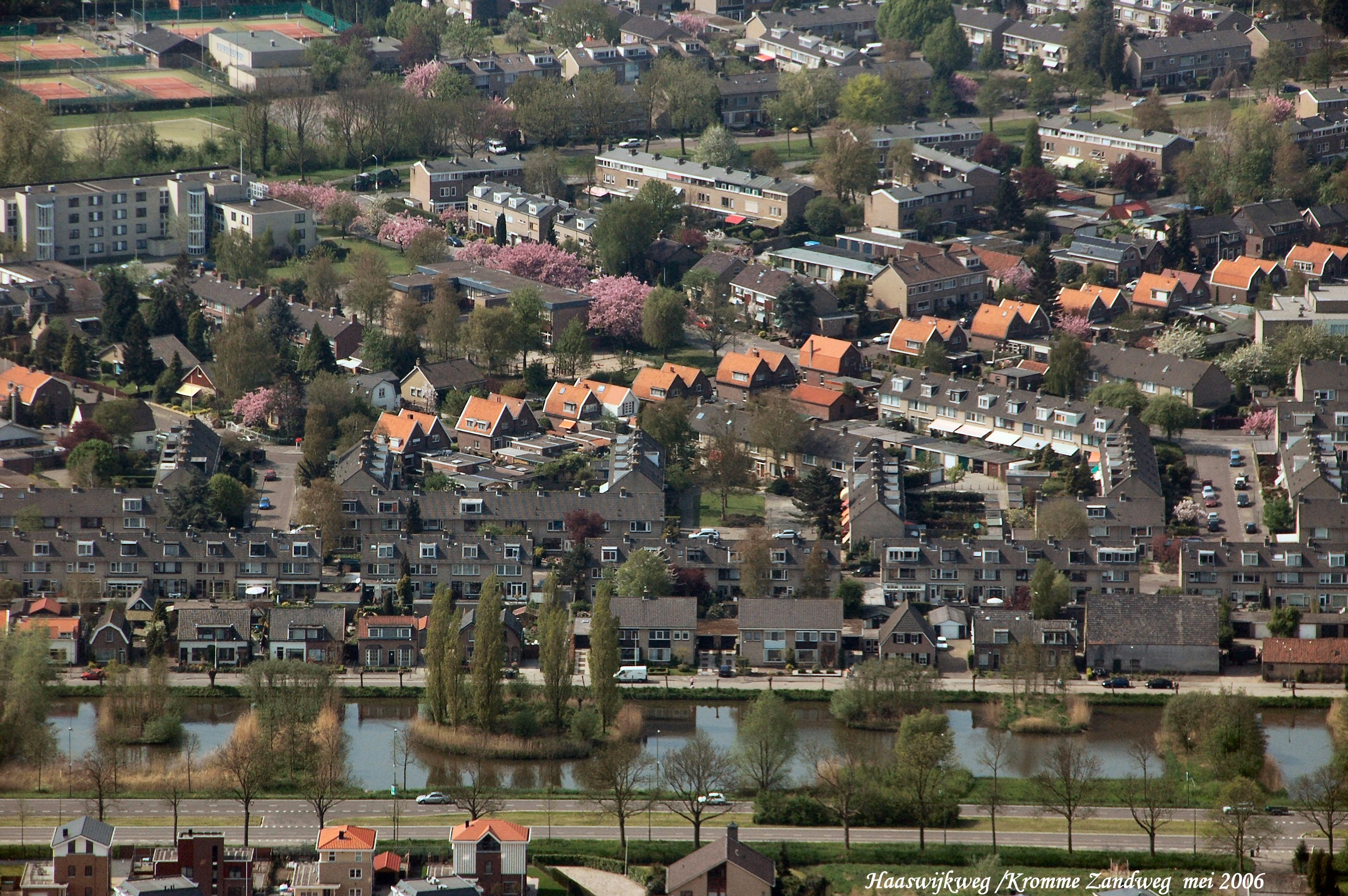 Onder is de Provincialweg met de Haaswijkweg Oost er boven Links boven tennisver. Dubbeldam aan de Esdoornlaan, met de rode daken is de Kromme Zandweg gezien in Zuidelijke richting.