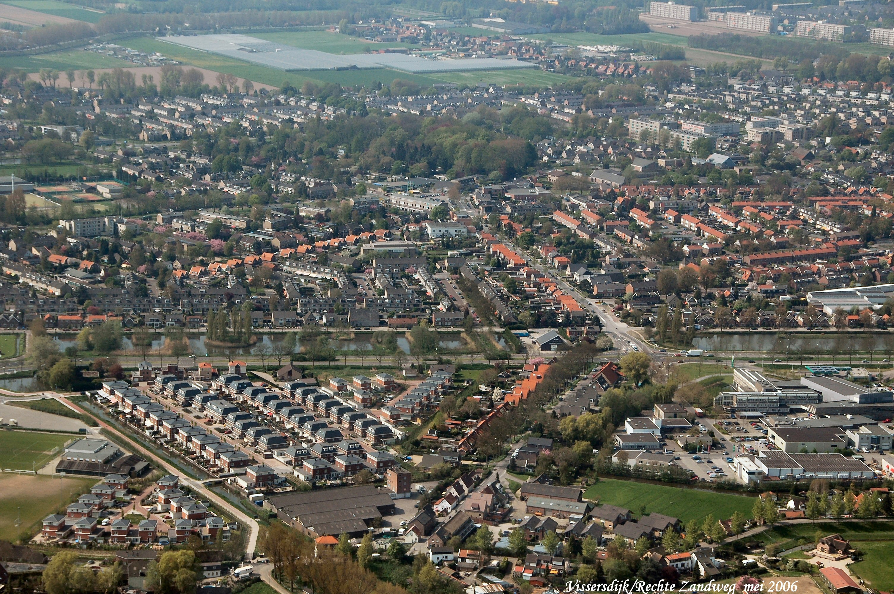 Links onder is de Visserstuin, mid.onder is de Vissersdijk. Midden van links naar rechts de Provincialeweg met de Haaswijkweg er boven Mid.boven is de Stevensweg met rechts boven Sterrenburg, in het midden is het Damplein. gezien in Zuid/Westelijke richting.