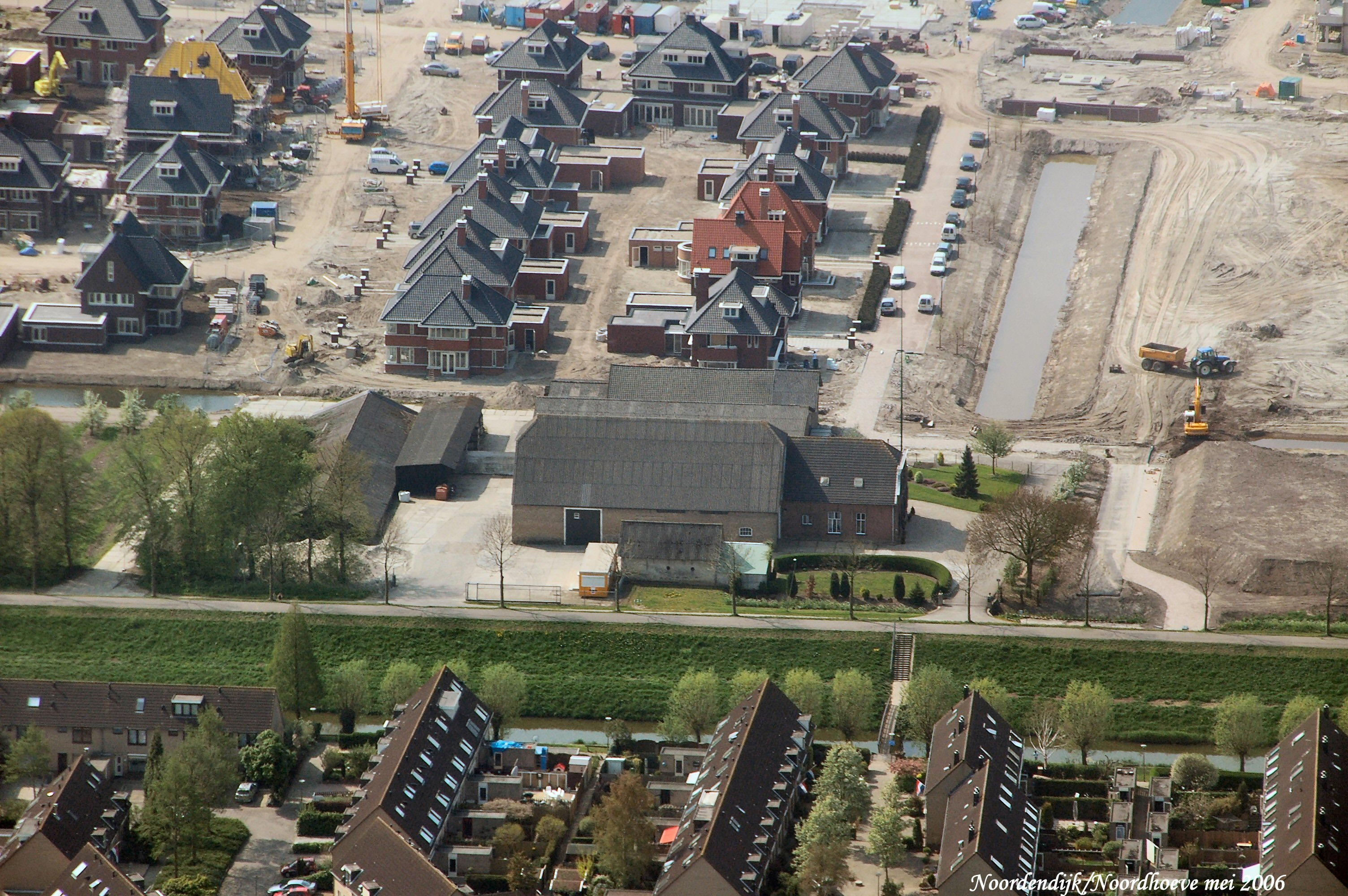 Onder is de Stadspolder met de Noordendijk er boven, in het midden de Noordhoeve met de Hoven in aanleg er boven gezien in Zuidelijke richting.