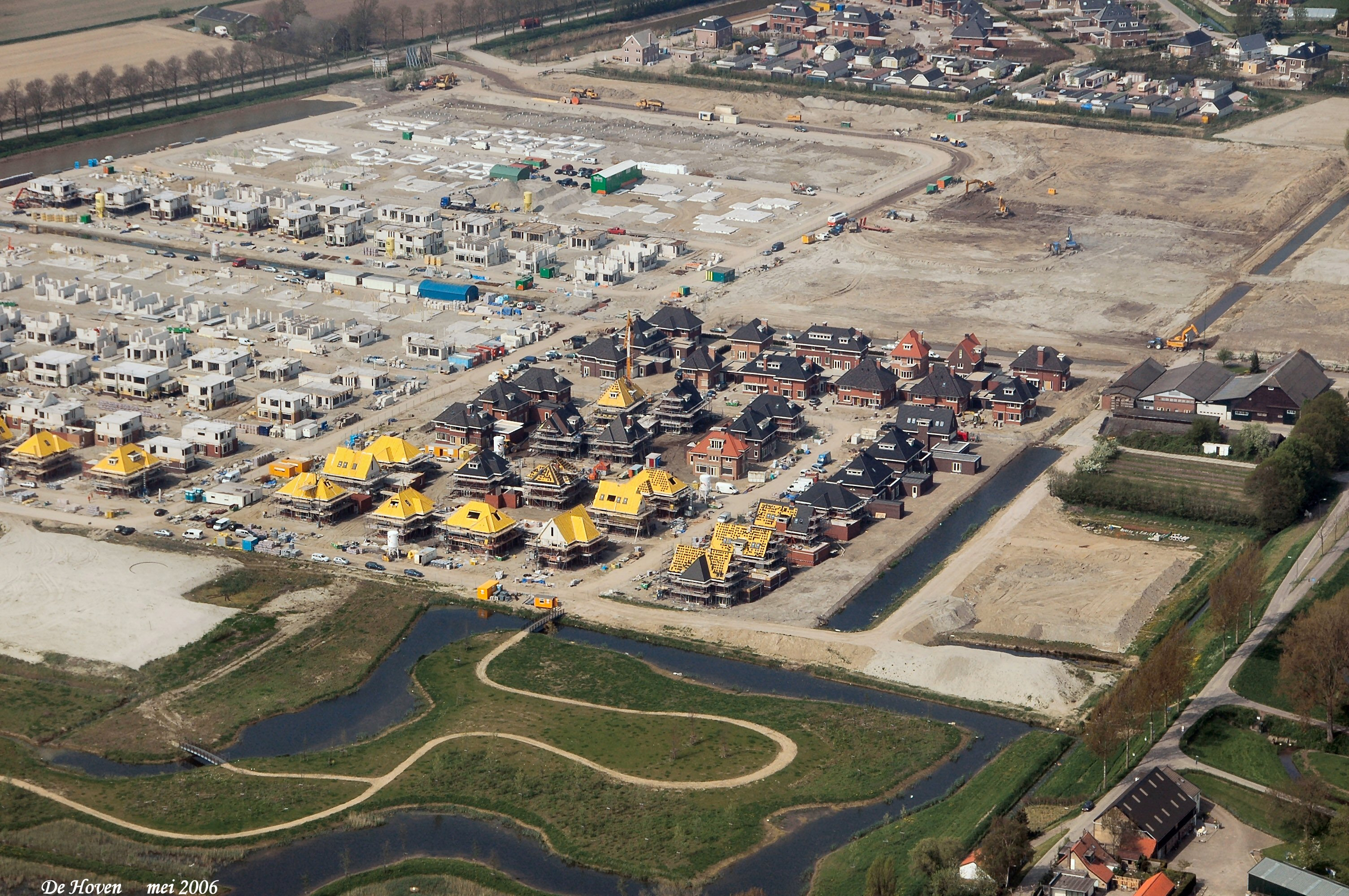 De Hoven in aanbouw met links boven de Provincialeweg en rechts onder de Noordendijk. mid.rechts de Noordhoeve gezien in Zuid/Westelijke richting.