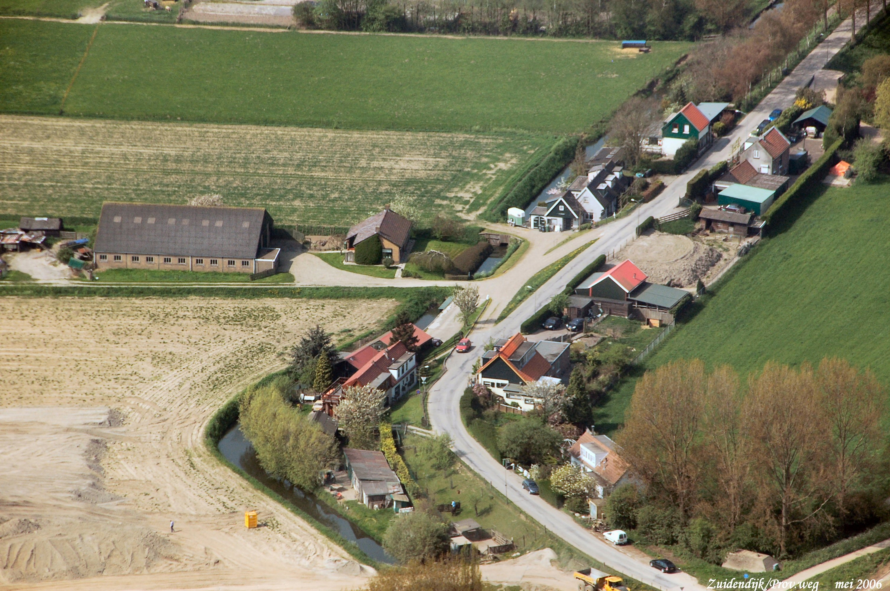Zuidendijk met rechts onder nog een stukje van de Provincialeweg gezien in Zuidelijke richting.
