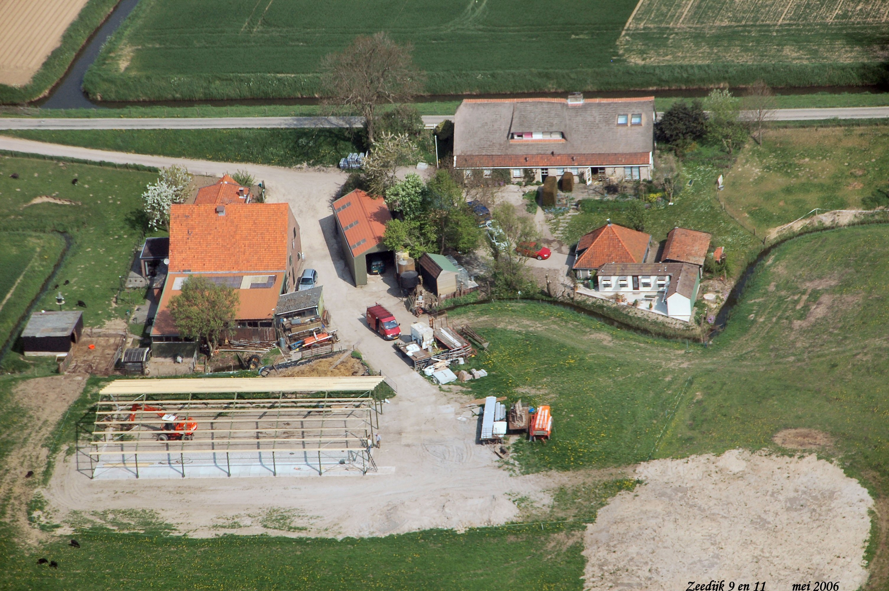 Zeedijk 9 en 11. de rechtse boerderij gebouwd ± 1720 heette vroeger "Huis Groenewegen/ Boutjeshuis" de schoorsteen diende als raaypunt vanaf de Bildersteeg naar de Koepeltoren van de Kerk in Lage Zwaluwe en gaf de scheiding aan van de gorzen en grienden in de Biesbosch