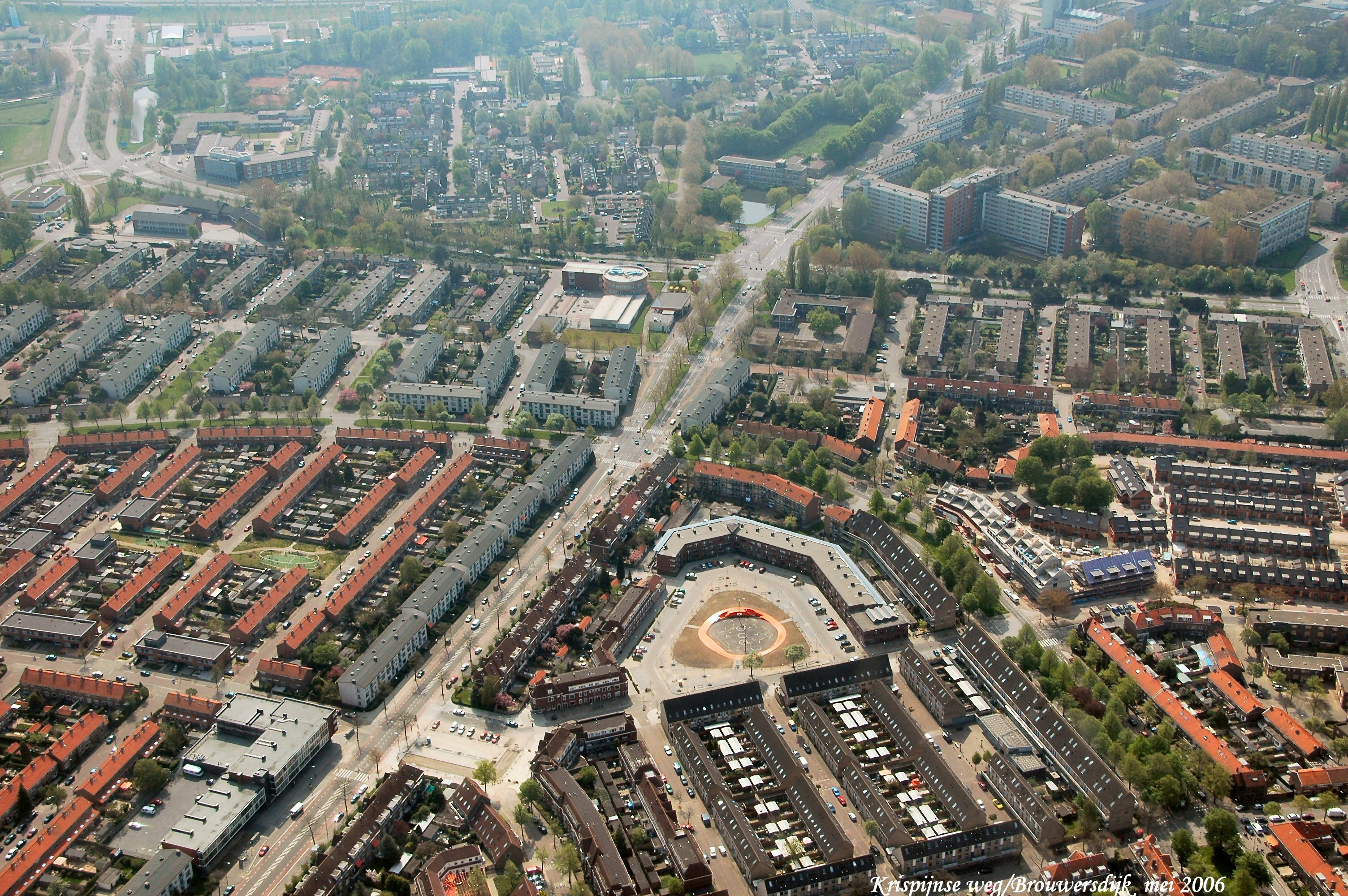Mid.onder naar boven is de krispijnseweg, rechts onder naar het midden is de Brouwersdijk. Links boven naar mid.rechts is de Laan der Ver. Naties.
