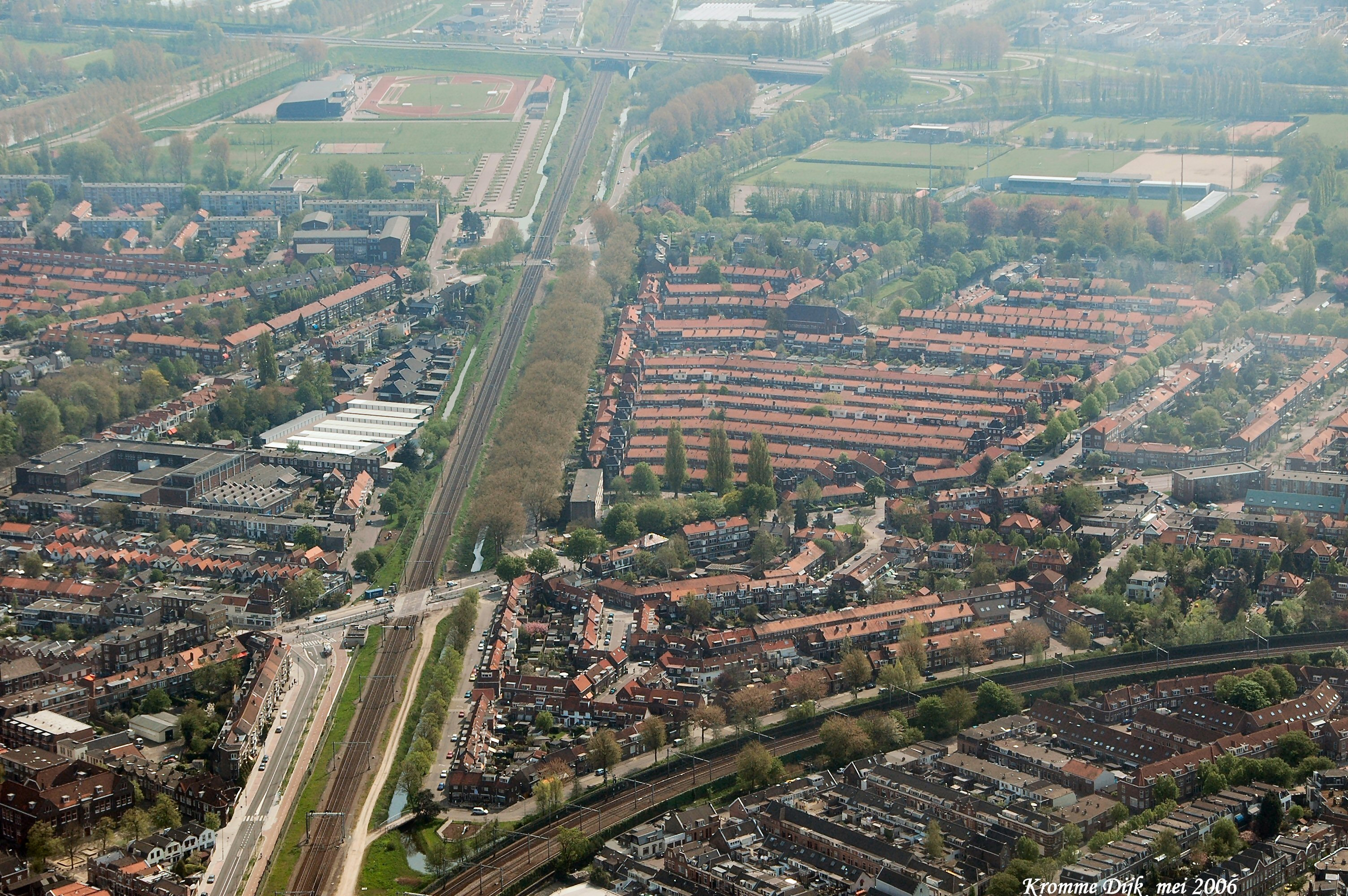 Links boven is de Noordendijk. links is de Vogelbuurt en rechts Land van Valk met boven de Rondweg gezien in Oostelijke richting.