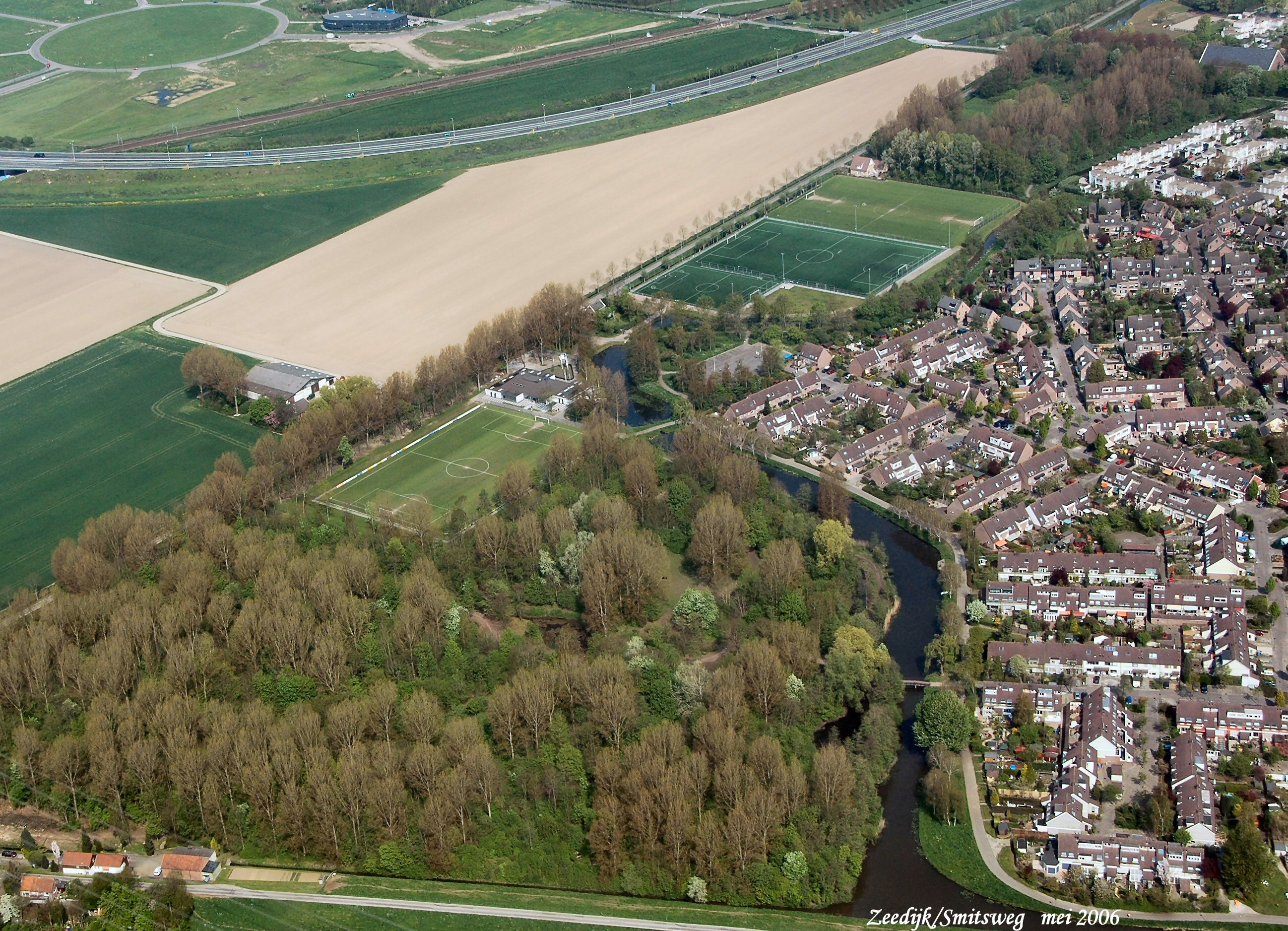 Onder is de Wieldrechtse Zeedijk links boven de Rondweg. rechts is Wittenstein. Mid.links naar boven is de Smitsweg met Voetbalver. Wieldrecht. gezien in Noordelijke richting.