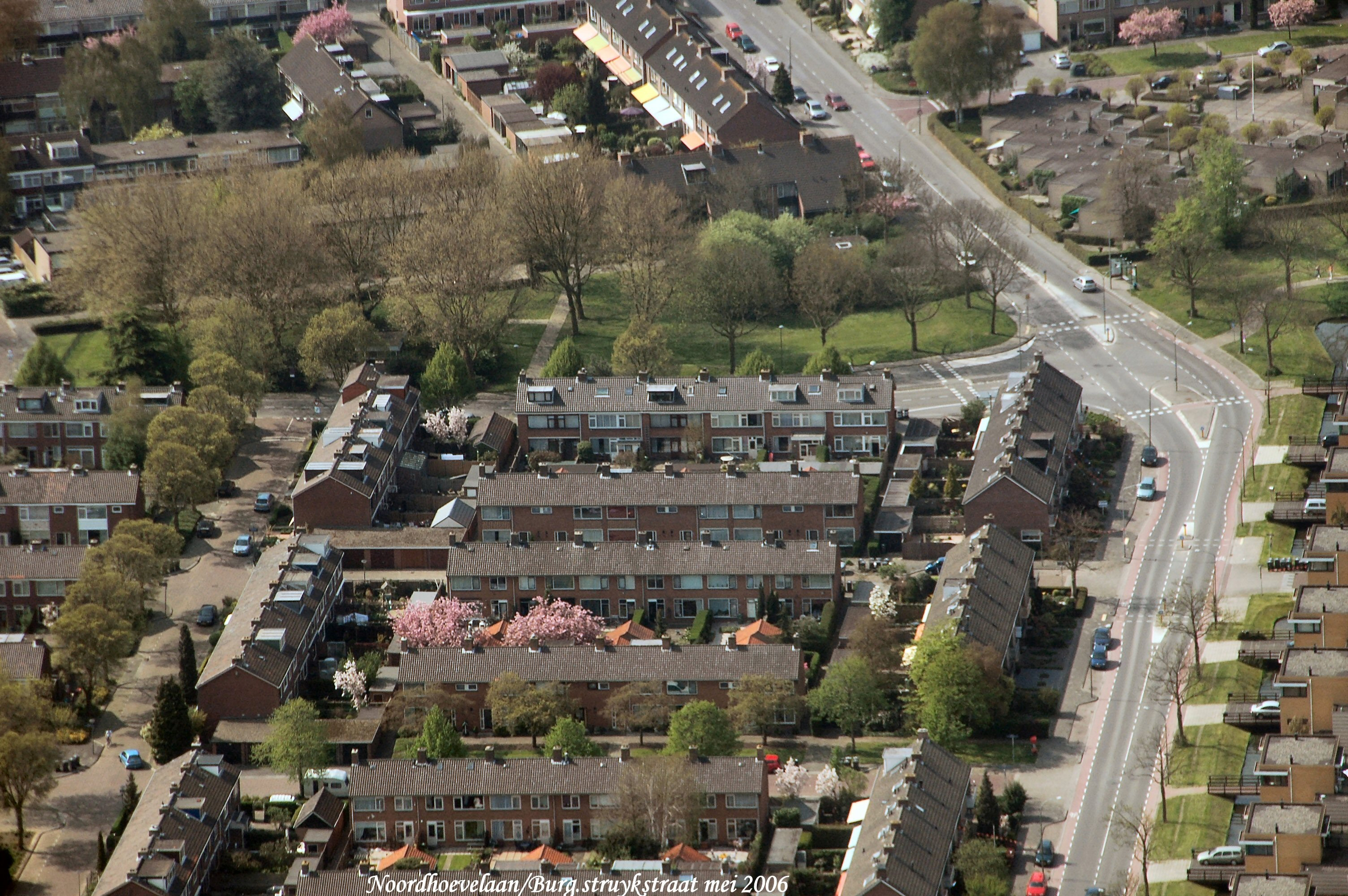 Noordhoevelaan overgaand in de Groene Kruislaan. mid.links naar rechts is de Nijhoflaan gezien in Zuidelijke richting.