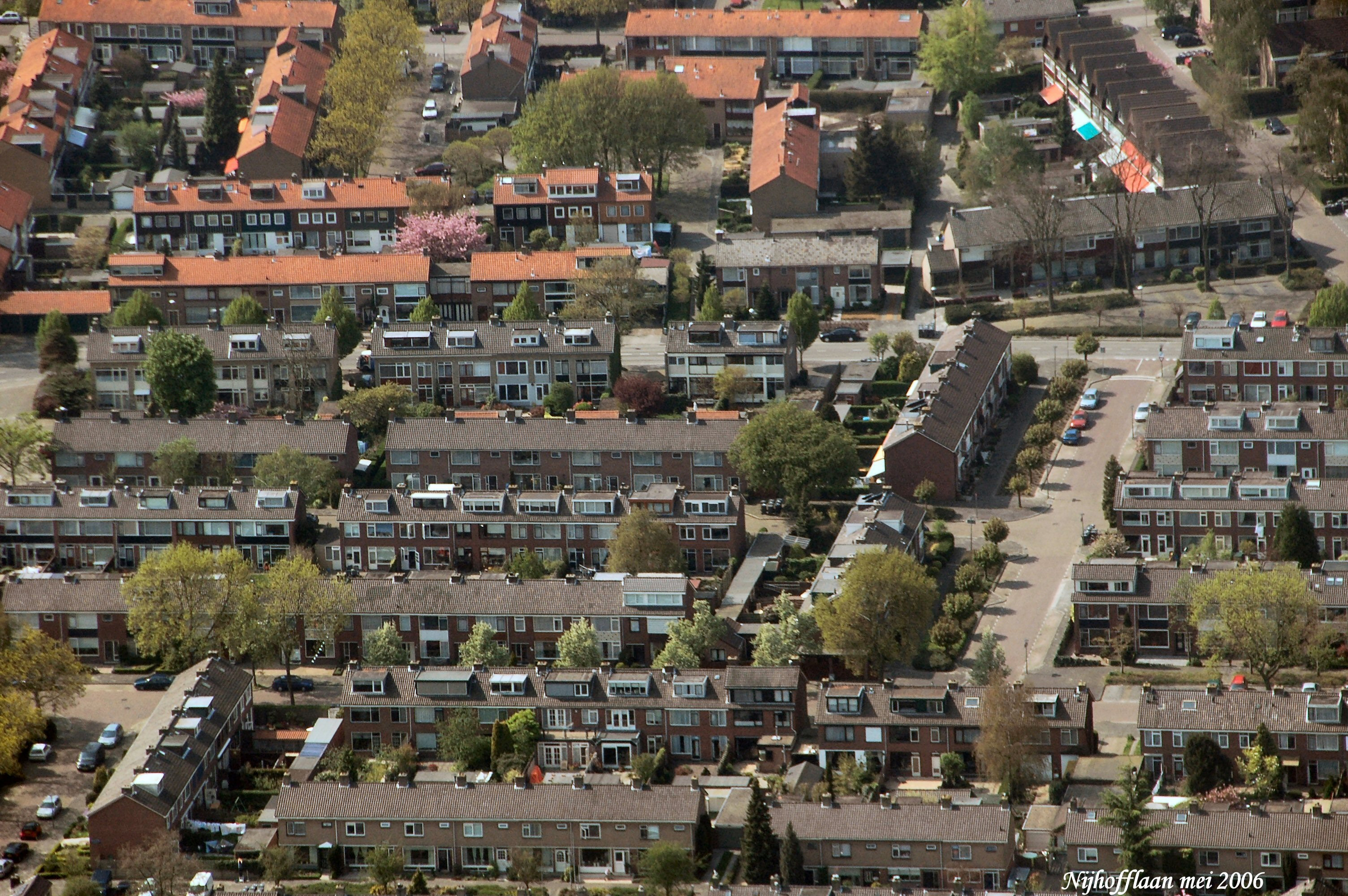 Rechts boven is de Heijermansstraat met in het midden de Nijhofflaan van links naar rechts gezien in Zuidelijke richting.