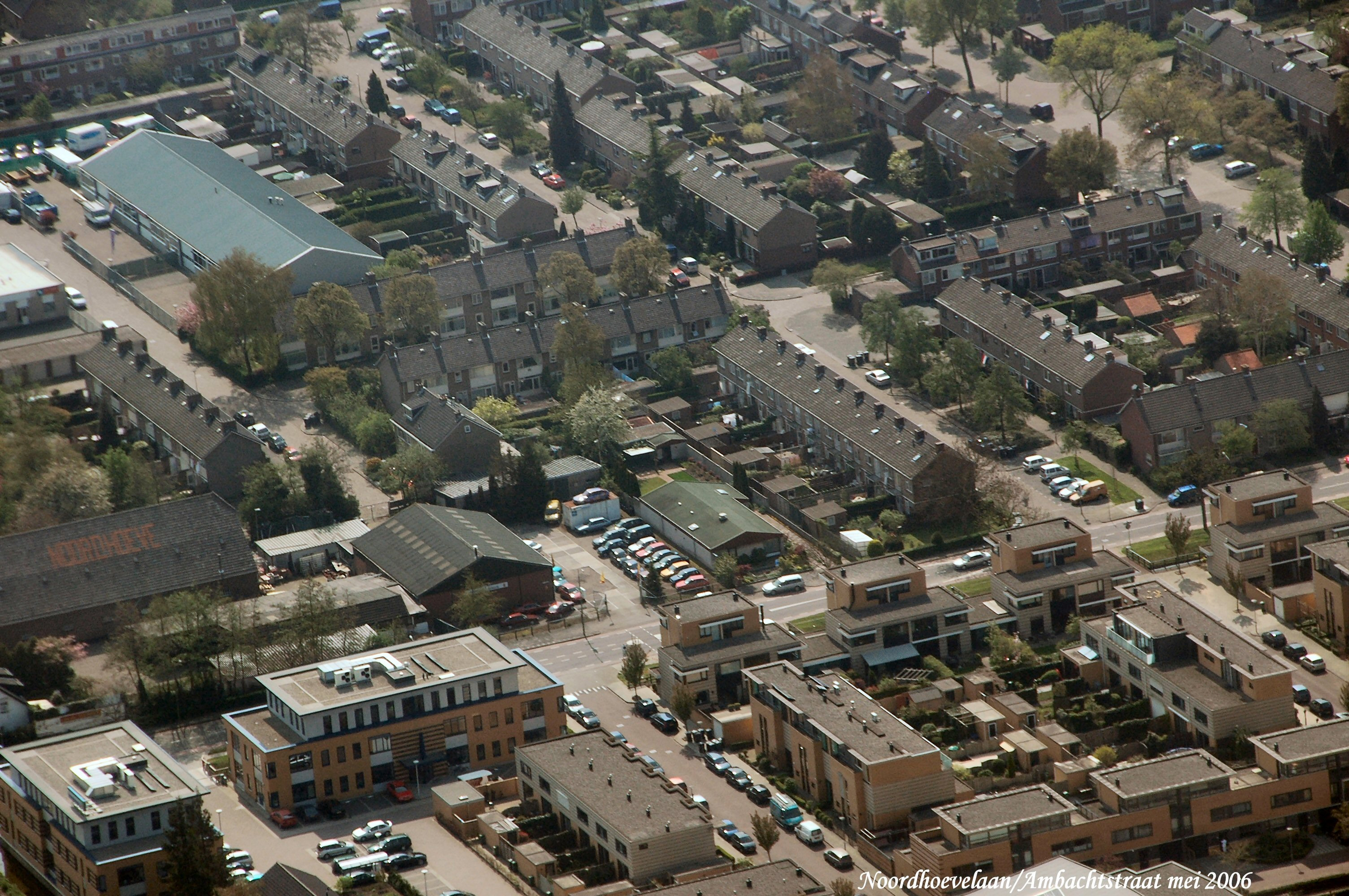Links onder naar rechts is de Noordhoevelaan,met links boven de Ambachtstraat. rechts boven is de Baron van Boetzelaerlaan gezien in Zuid/Oostelijke richting.