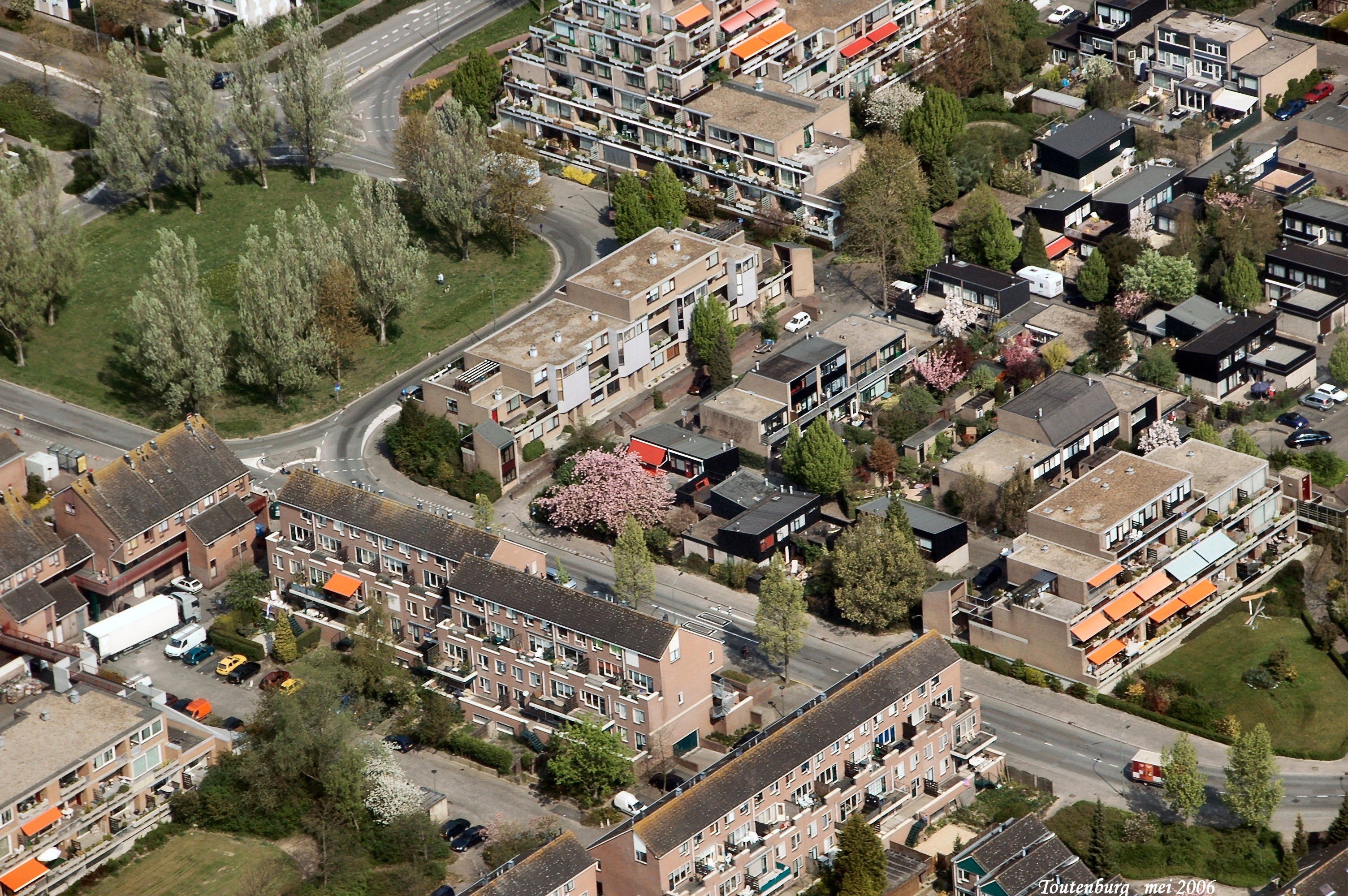 Links onder is Slangenburg met Lunenburg er boven, links boven is Hellenburg met de Galileilaan rechts er van, rechts boven is Toutenburg gezien in Noordelijke richting.