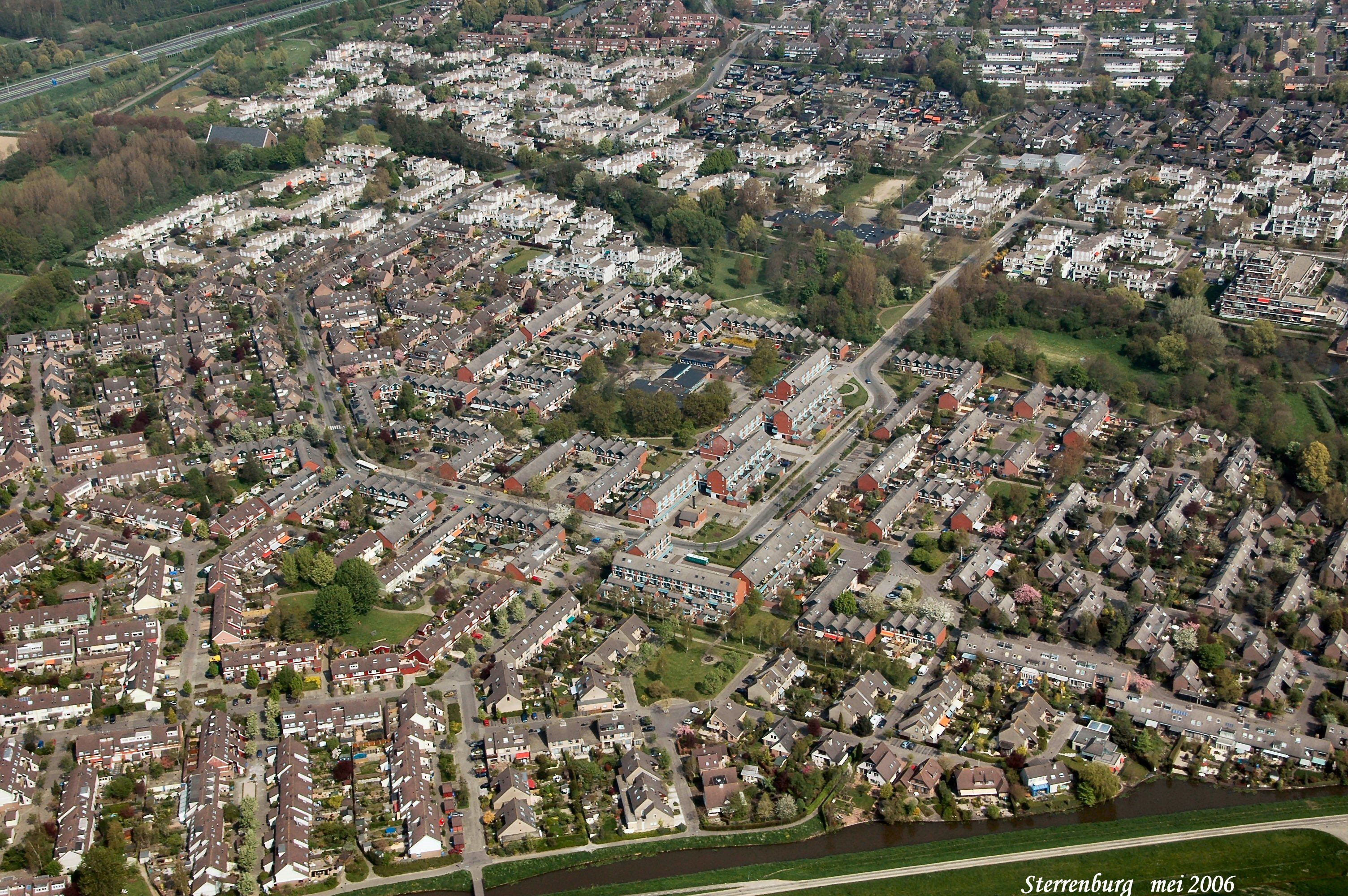 Sterrenburg 3 met rechts onder de Wieldrechtse Zeedijk. links boven is de Rondweg gezien in Noordelijke richting.