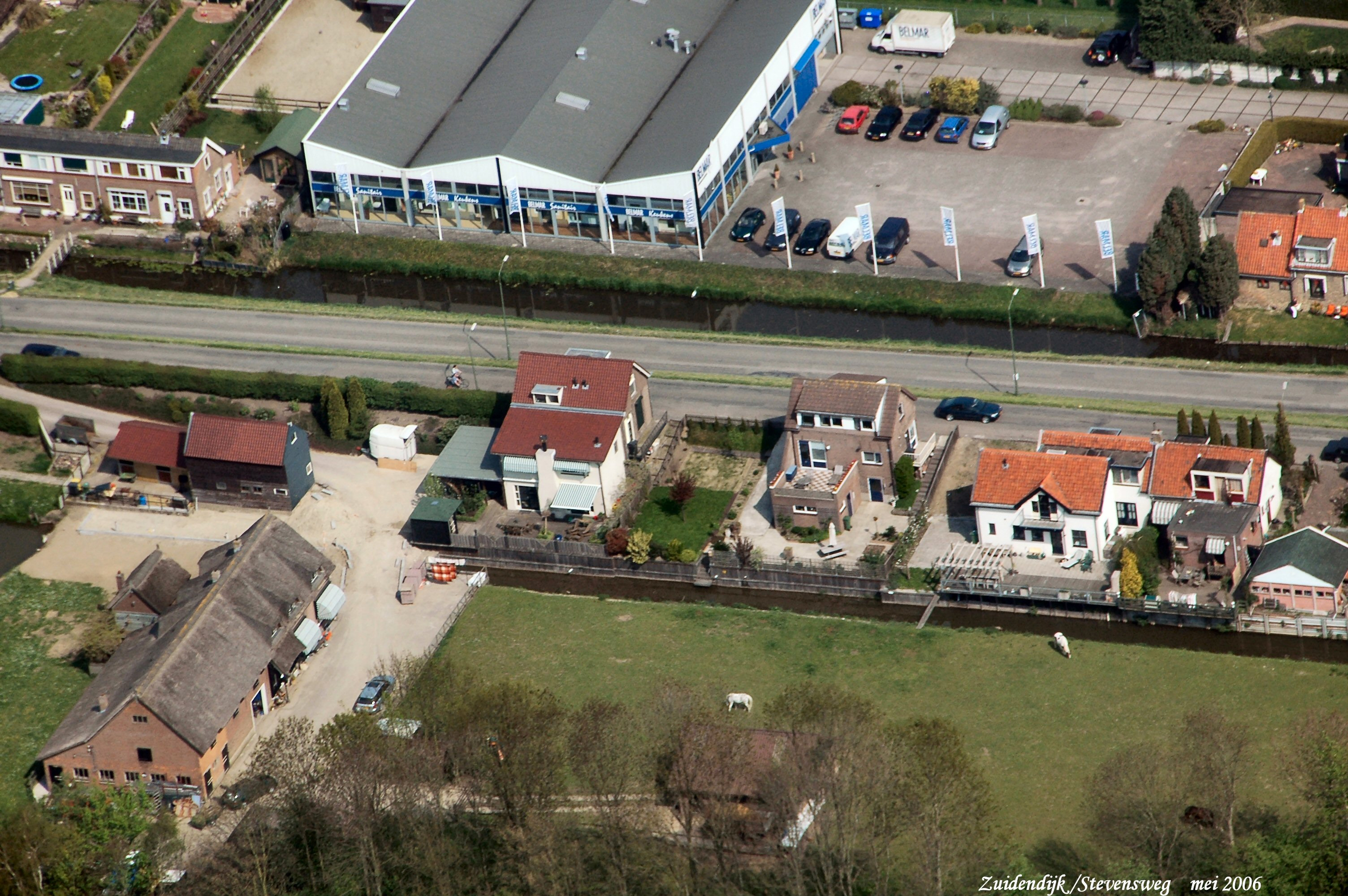 - Luchtfoto van de Zuidendijk nabij de Stevensweg. Bovenin de vestiging van Belmar Keukens).
