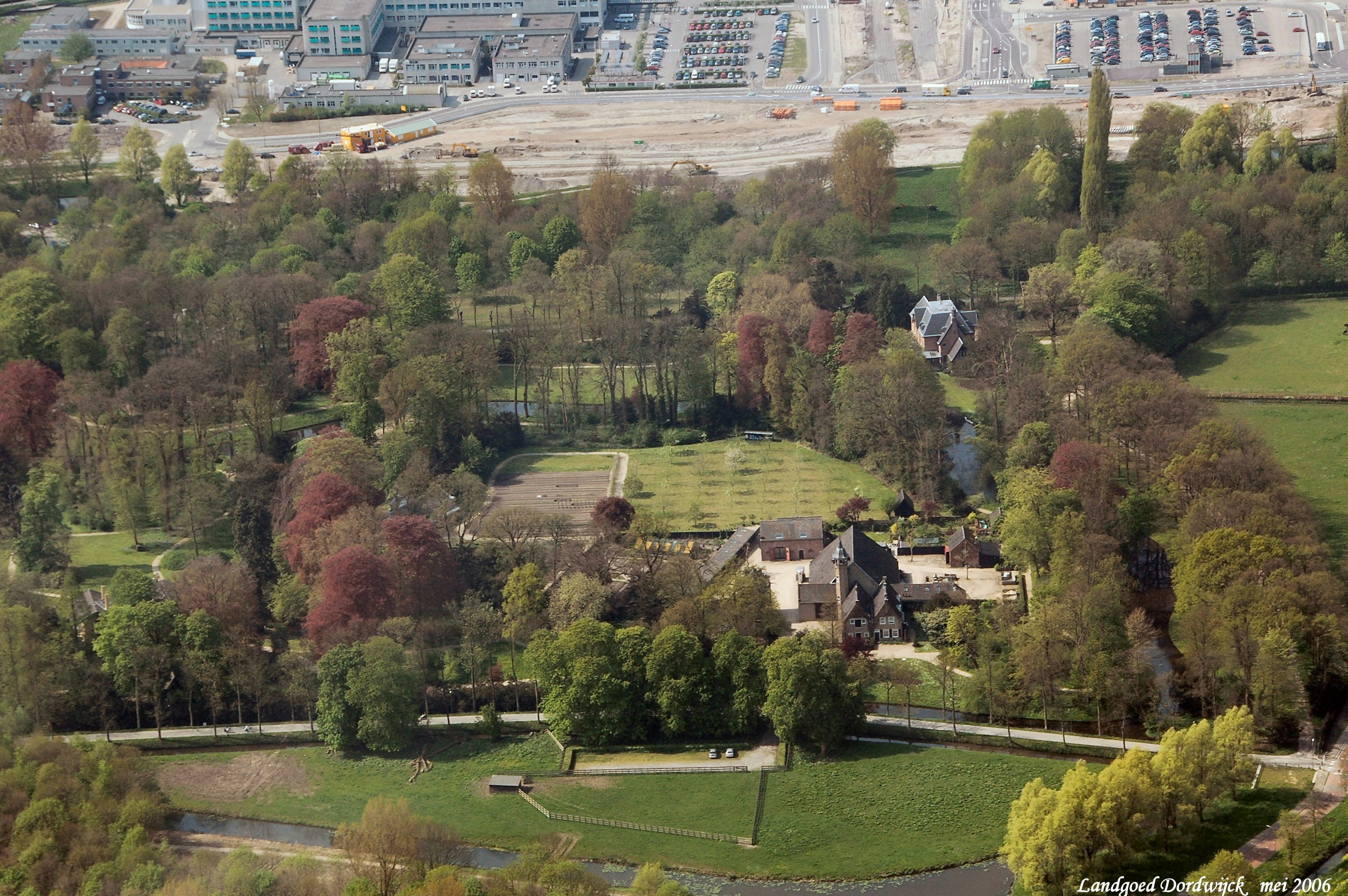 Onder is de Dordwijklaan met de boerderij van Landgoed Dordwijk er boven, boven de boerderij is Villa Sorghvliet te zien. links boven is het ziekenhuis ASZ gezien in Zuidelijke richting.
