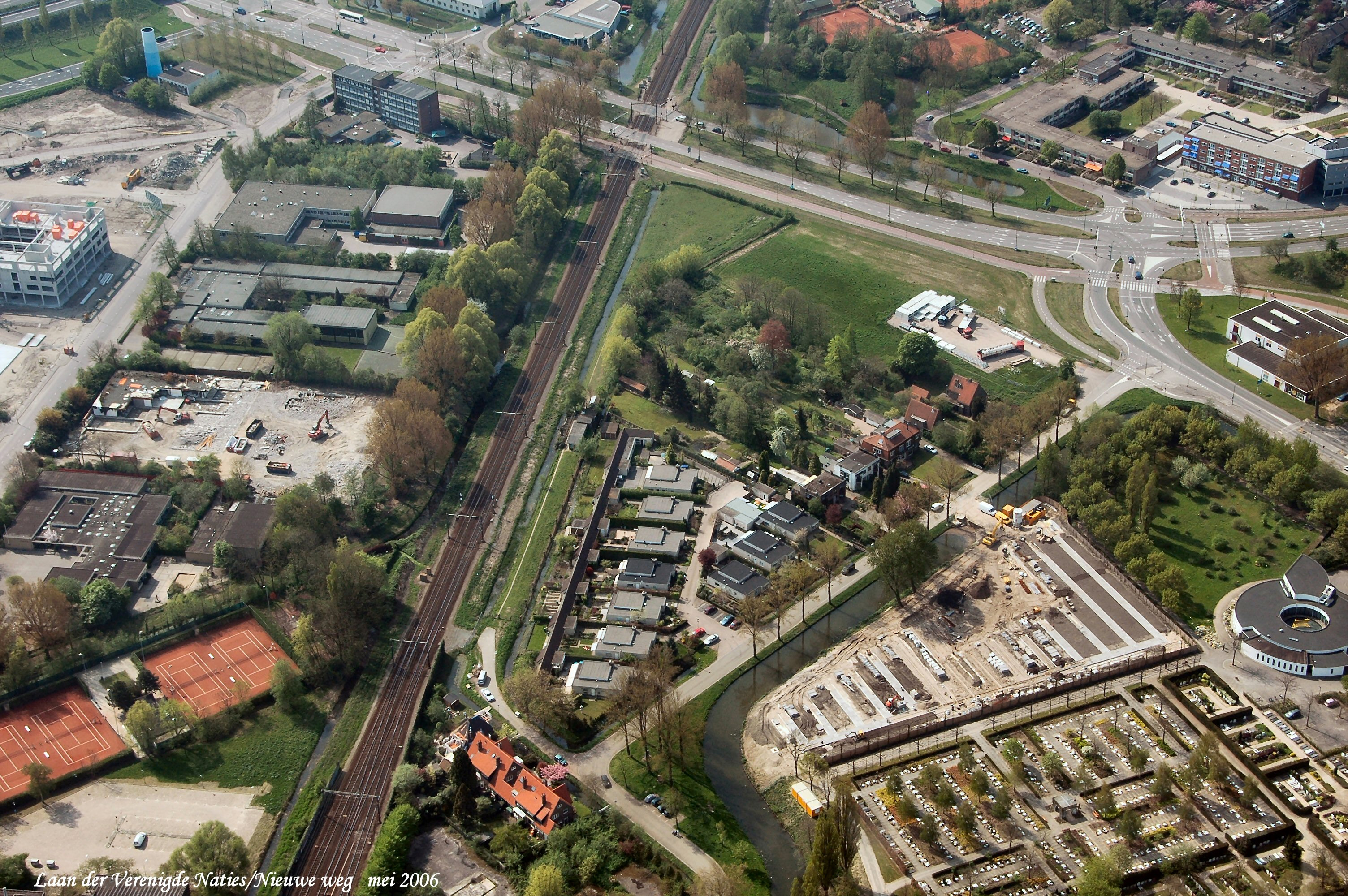 Boven is de Laan der Ver.Naties met in het midden spoorlijn Dordrecht-Breda. rechts onder begraafplaats Dordrecht. links het Leerpark gezien in Zuidelijke richting.