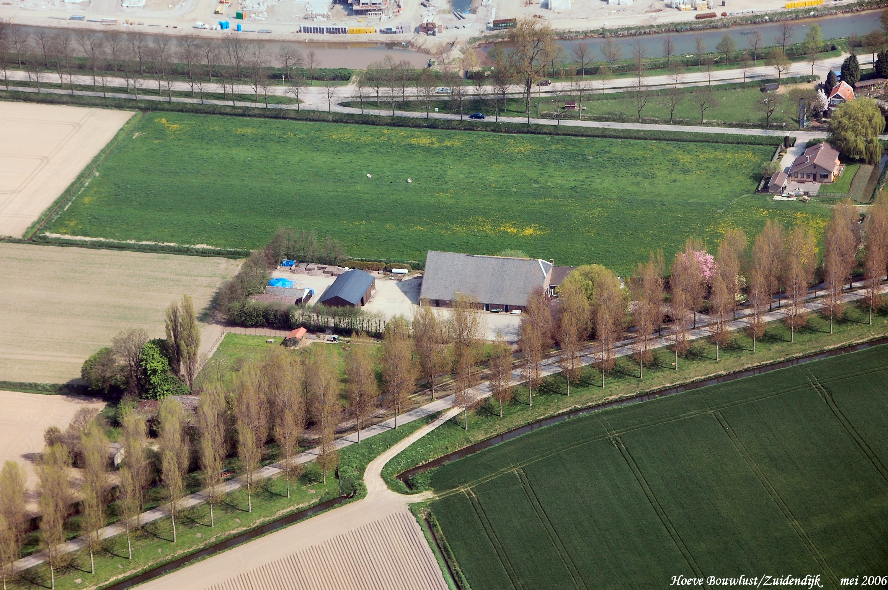 Onder is de Zuidendijk met Hoeve Bouwlust. boven is de Haaswijkweg Oost met de Provincialeweg. geheel boven is de Hoven gezien in Noordelijke richting.