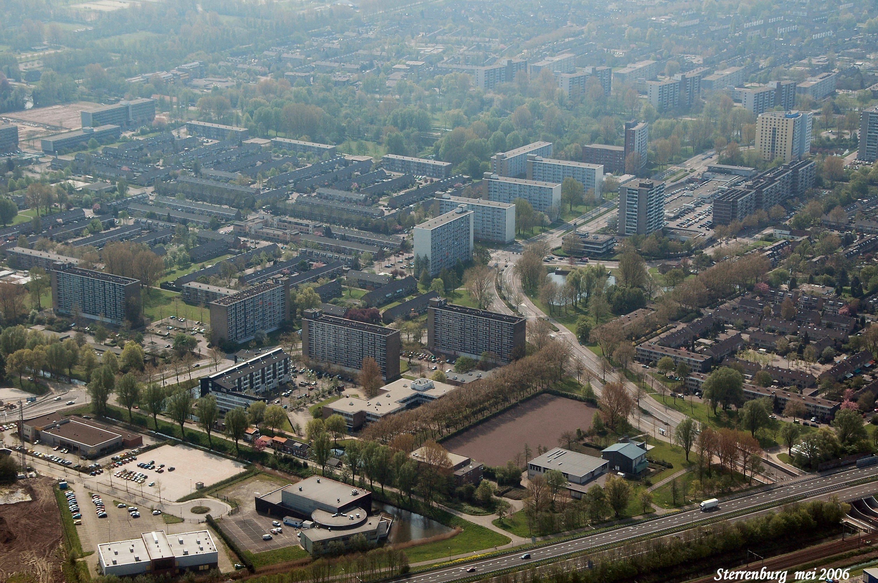 Sterrenburg met rechts onder de Rondweg. Rechts onder naar boven is de Galileilaan. mid.links naar rechts is de Kapteinweg gezien in Zuid/Oostelijke richting.