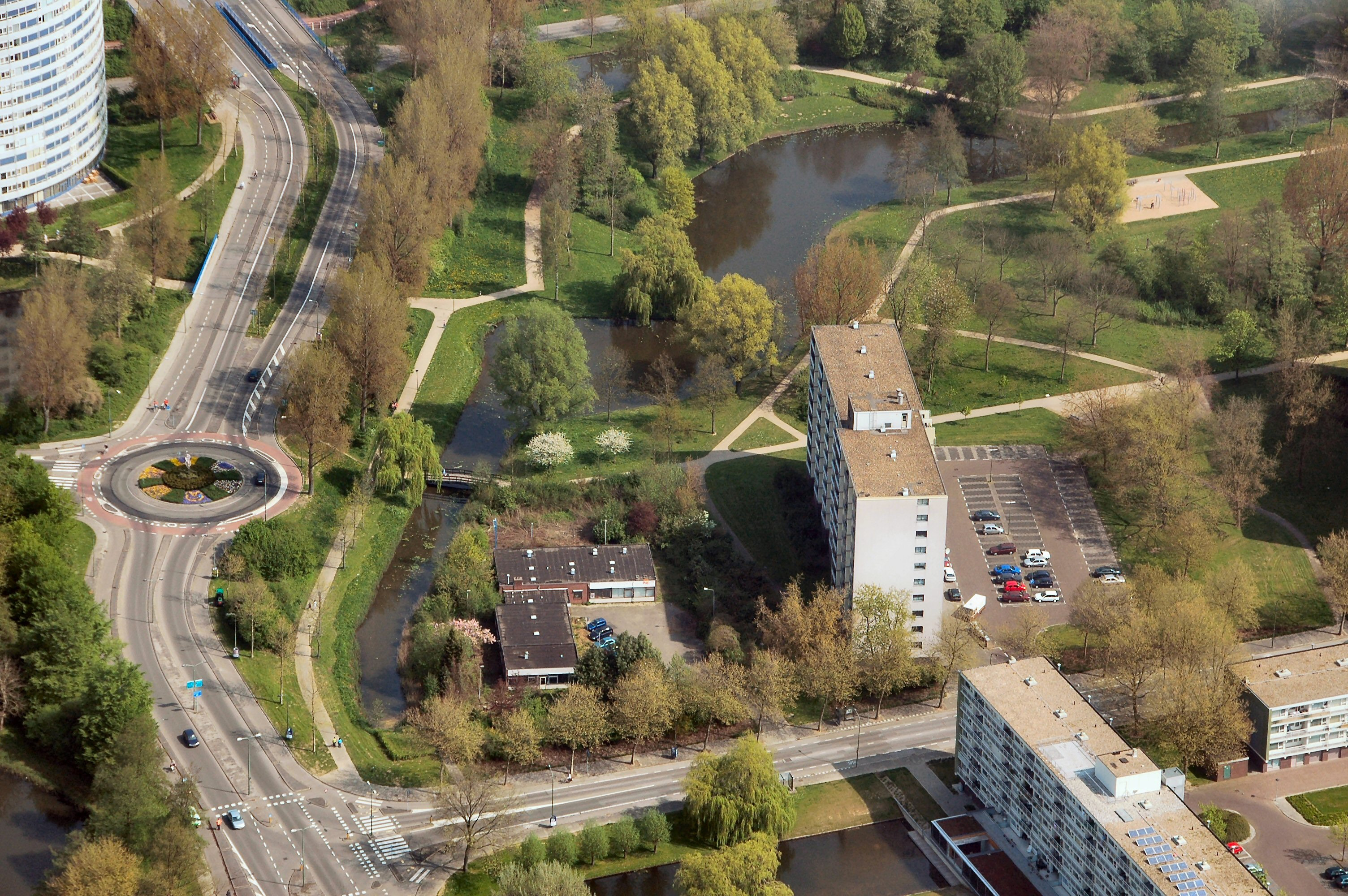 Mid.links is de Eulerlaan. Links onder naar boven is de Galileilaan. onder is de Blauwweg met rechts boven Het Sterrenburgpark gezien in Noordelijke richting.