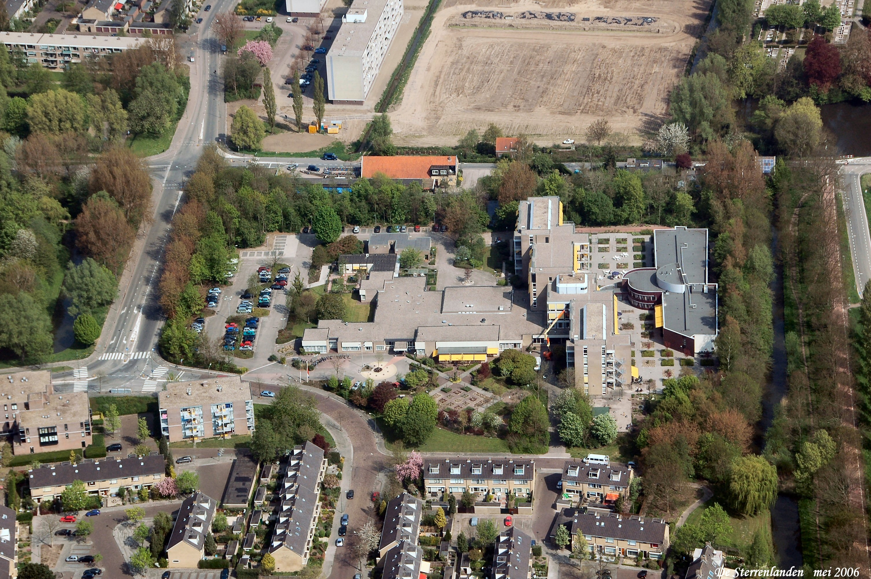 Verpleeghuis Sterrenlanden in de hoek Zuidendijk-Schenkeldijk. links boven is de Leeuwstraat met mid.onder de Minnaertweg. gezien in Noordelijke richting.