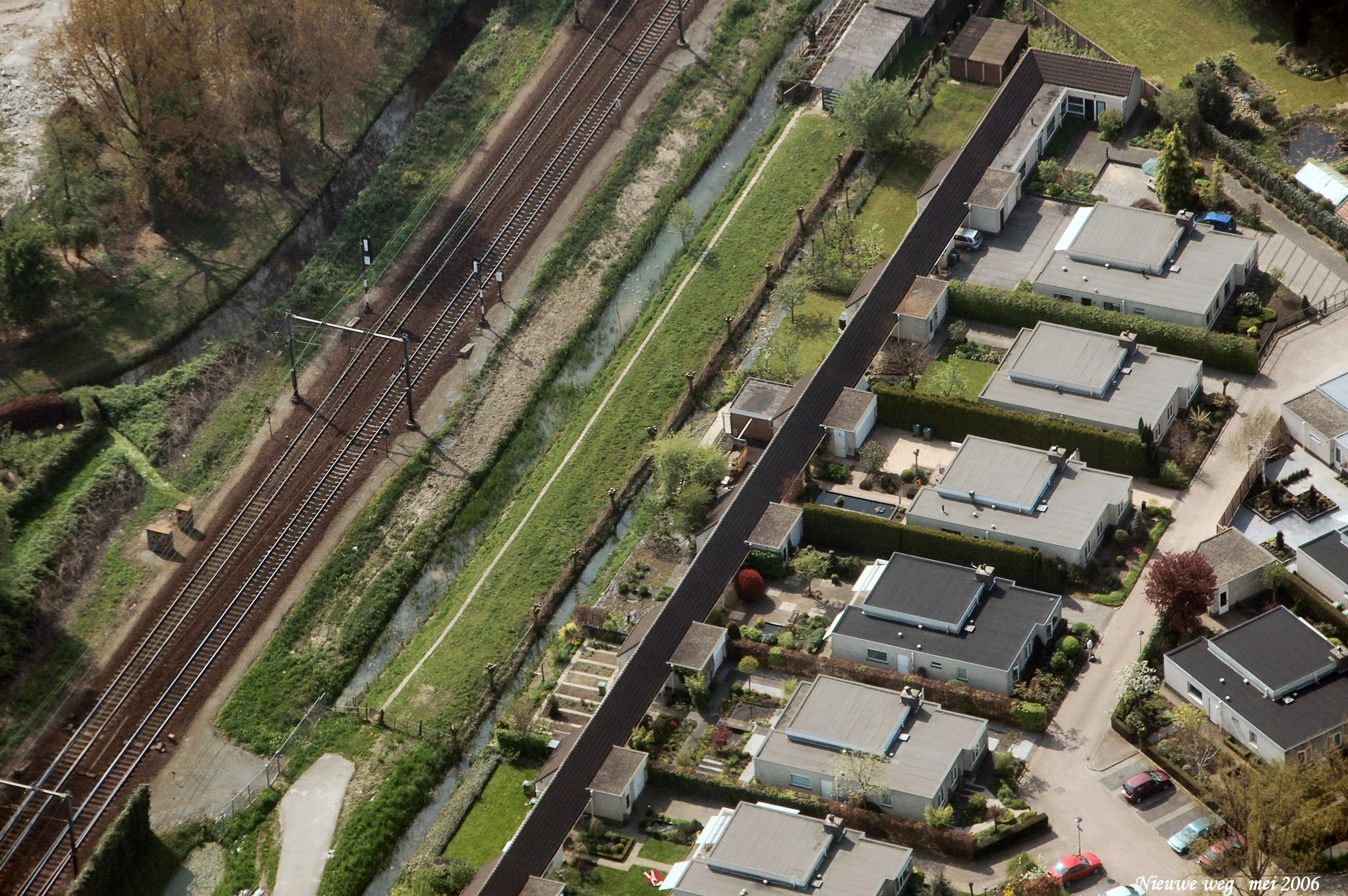 Nieuweweg met links spoorlijn Dordrecht-Breda gezien in Zuidelijke richting.