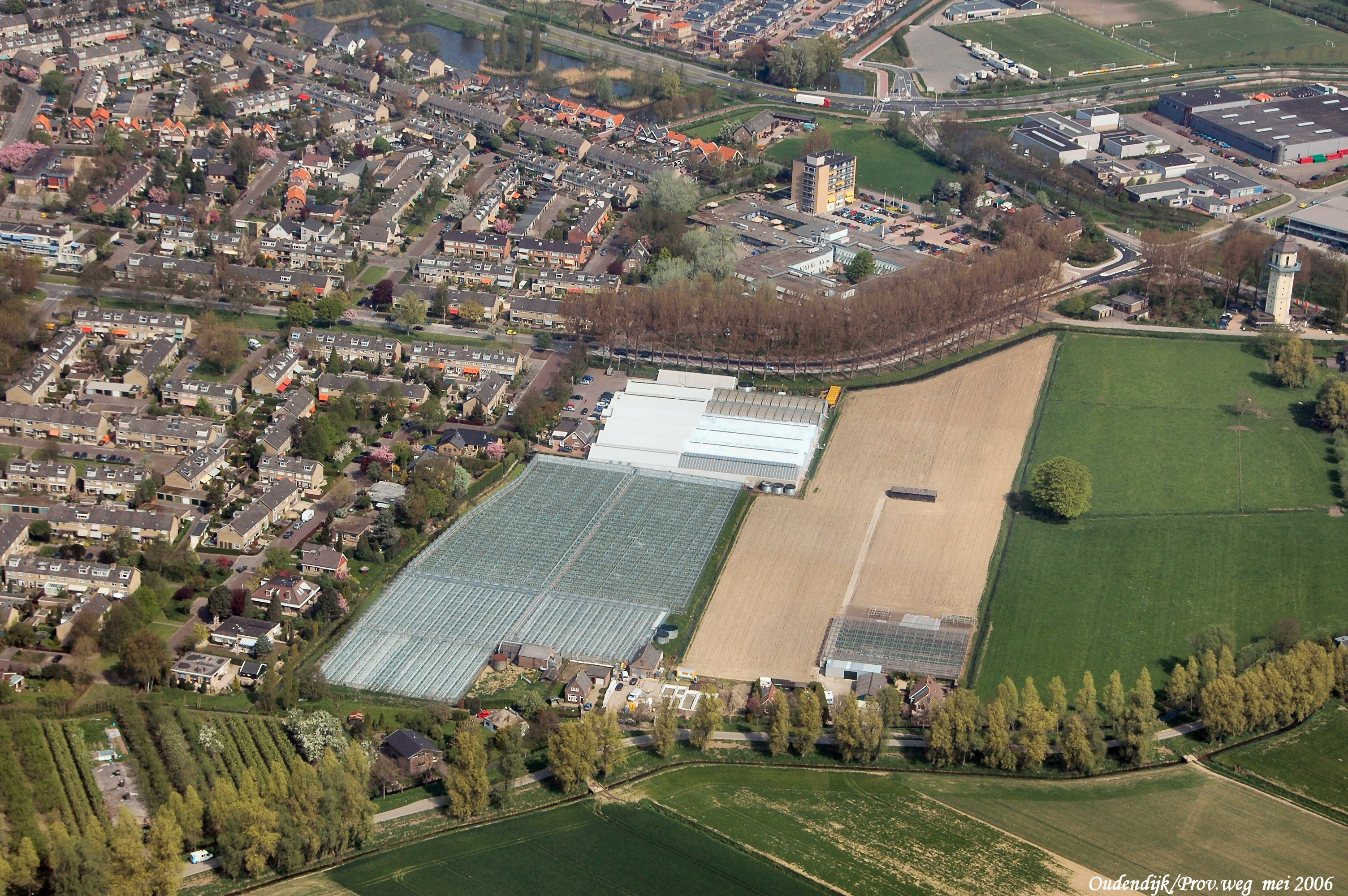 Onder is de Oudendijk met rechts de watertoren van Dubbeldam. boven is de Provincialeweg met de Dubbelsteynlaan in het midden gezien in Noordelijke richting.