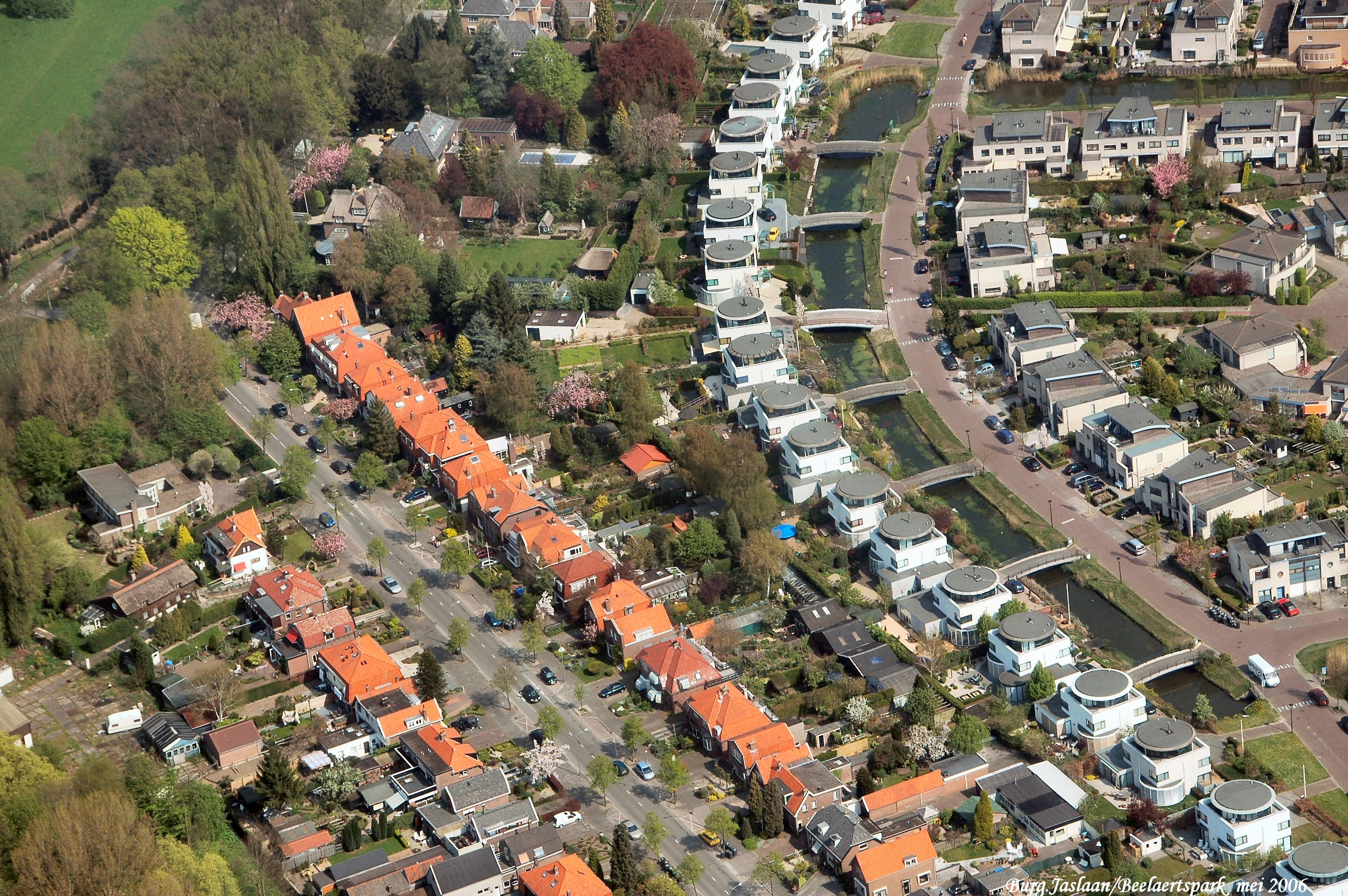 Links is de Burg.Jaslaan en rechts het Beelaertspark gezien in Noordelijke richting.