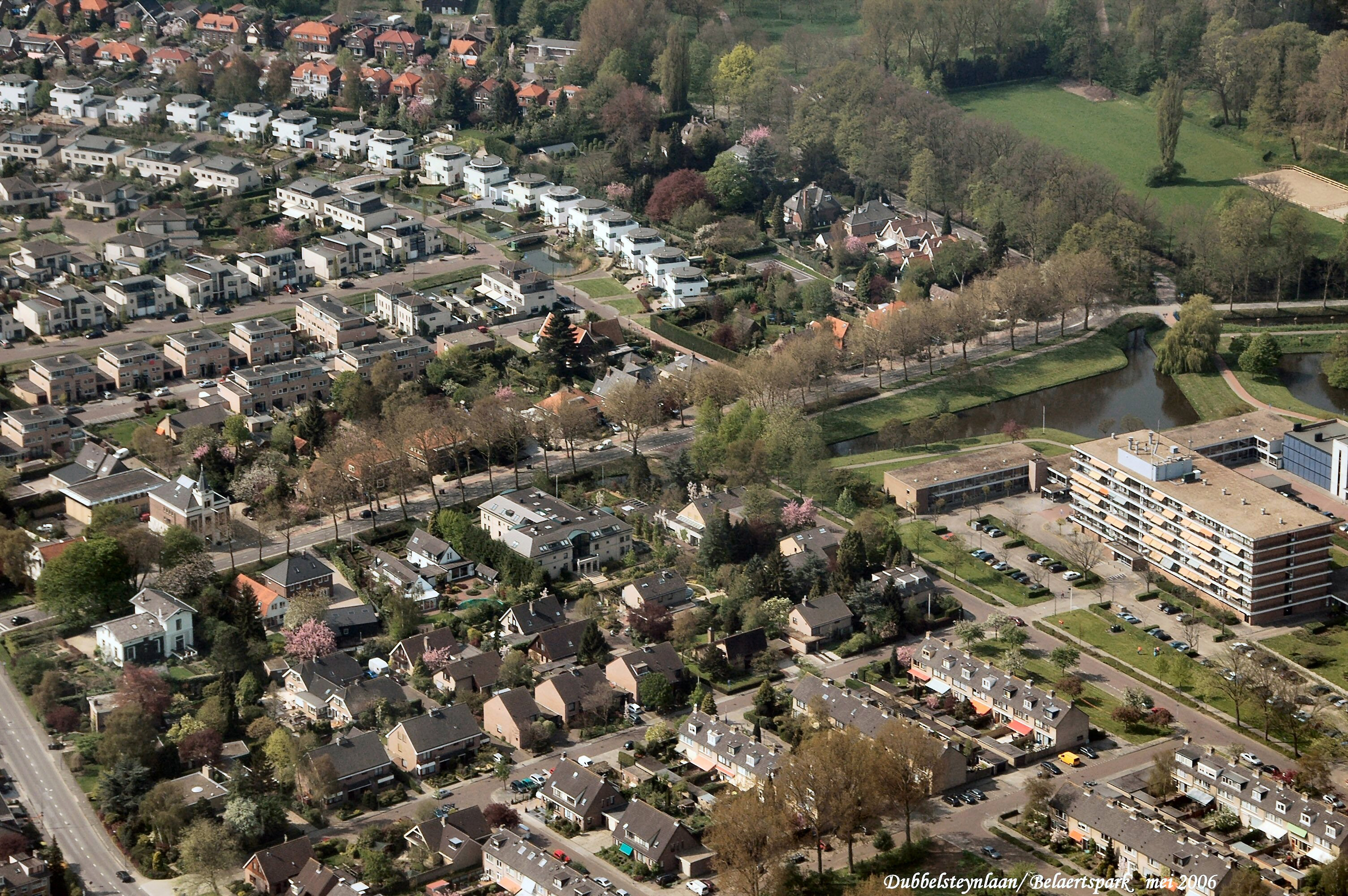 Mid.rechts is Dubbelmonde aan de Koningstraat. links onder is de Groene Kruislaan. links boven is het Beelaertspark en rechts boven Landgoed Dordwijk. gezien in Zuid/Westelijke richting