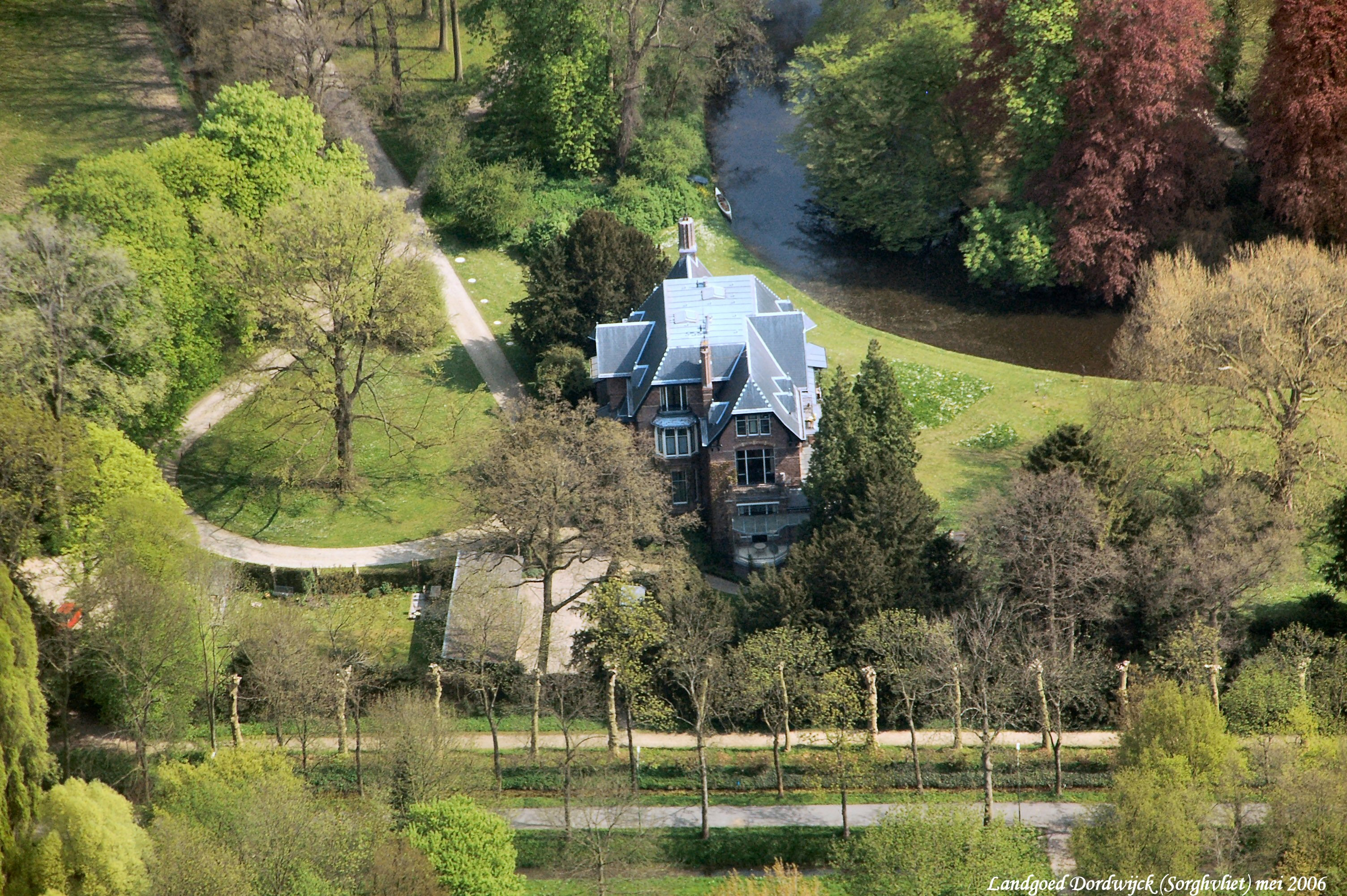 Landgoed Dordwijk met villa Sorghvliet, onder is de Achterweg gezien in Noordelijke richting.