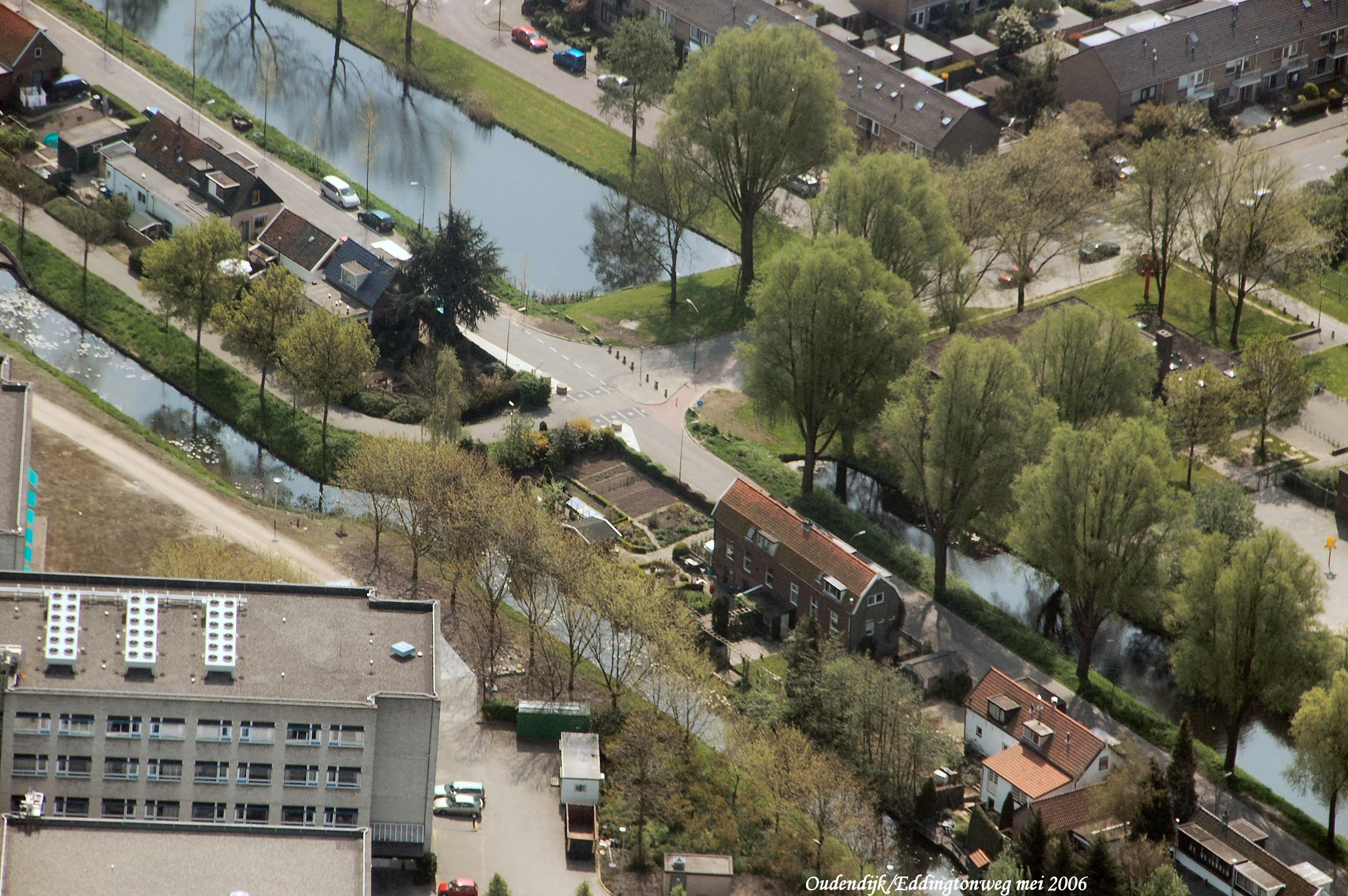 Oudendijk met rechts de Eddingtonweg gezien in Zuid/Oostelijke richting.