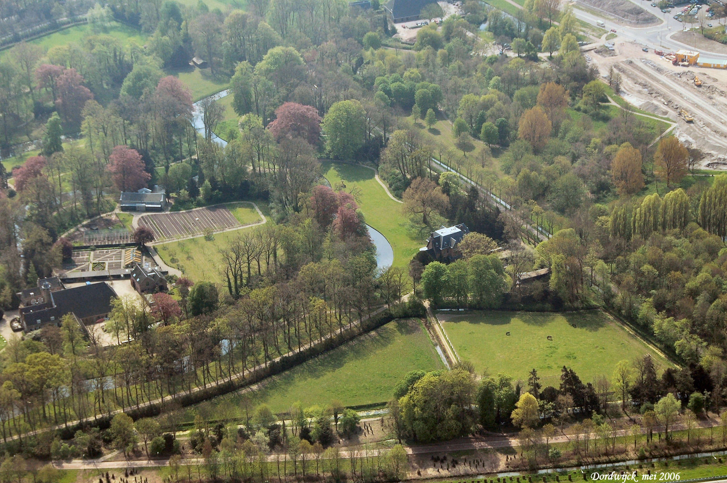 Landgoed Dordwijk met de villa Sorghvliet, rechts boven is de Overkampweg. rechts onder naar mid.boven is de Achterweg gezien in Zuid/Oostelijke richting.
