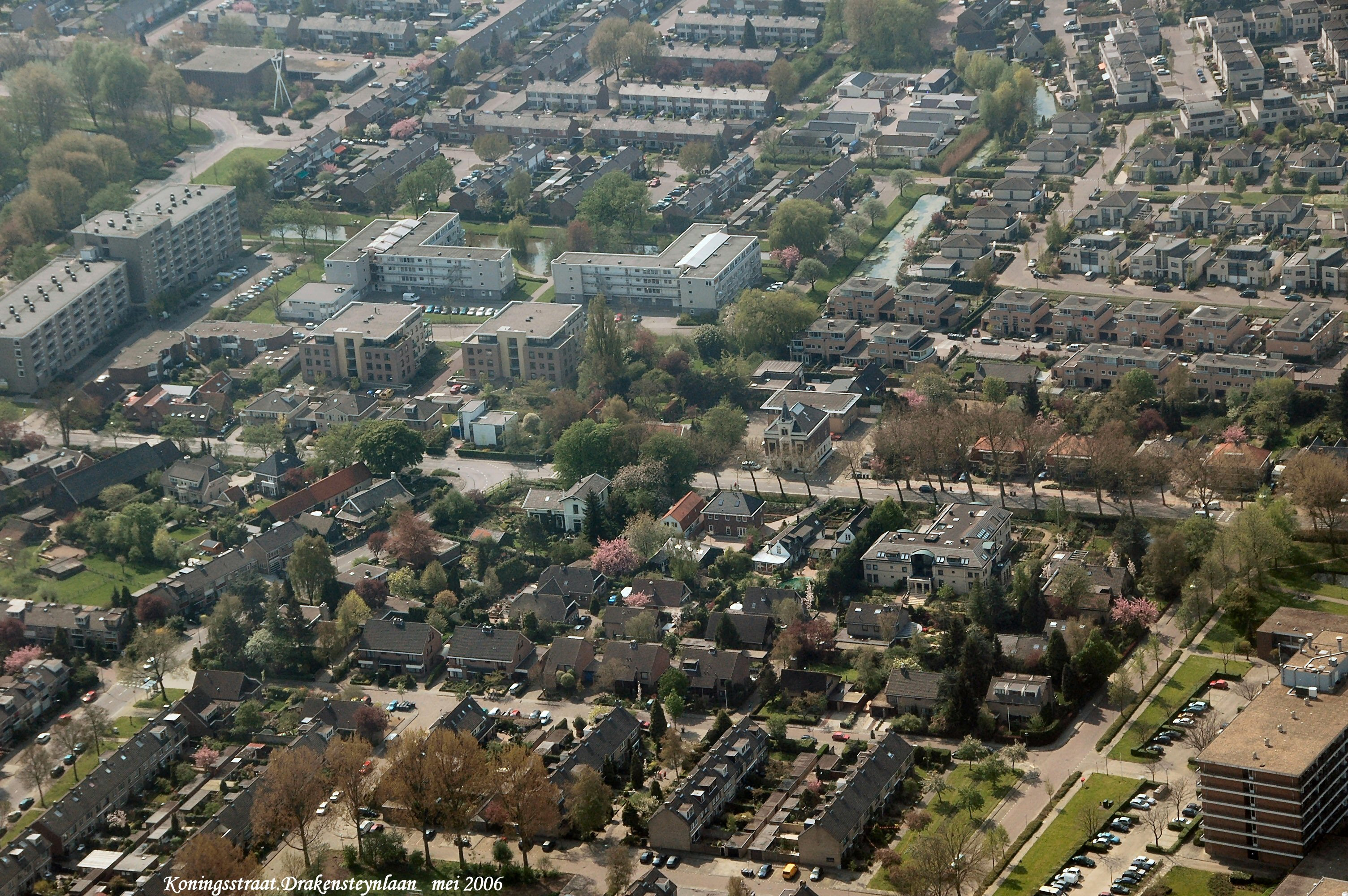 Rechts onder is Dubbelmonde aan de Koningstraat, rechts boven is het Beelaertspark. mid.links naar rechts is de Dubbelsteynlaan. links boven is de Gravenhorst gezien in Zuid/Oostelijke richting.
