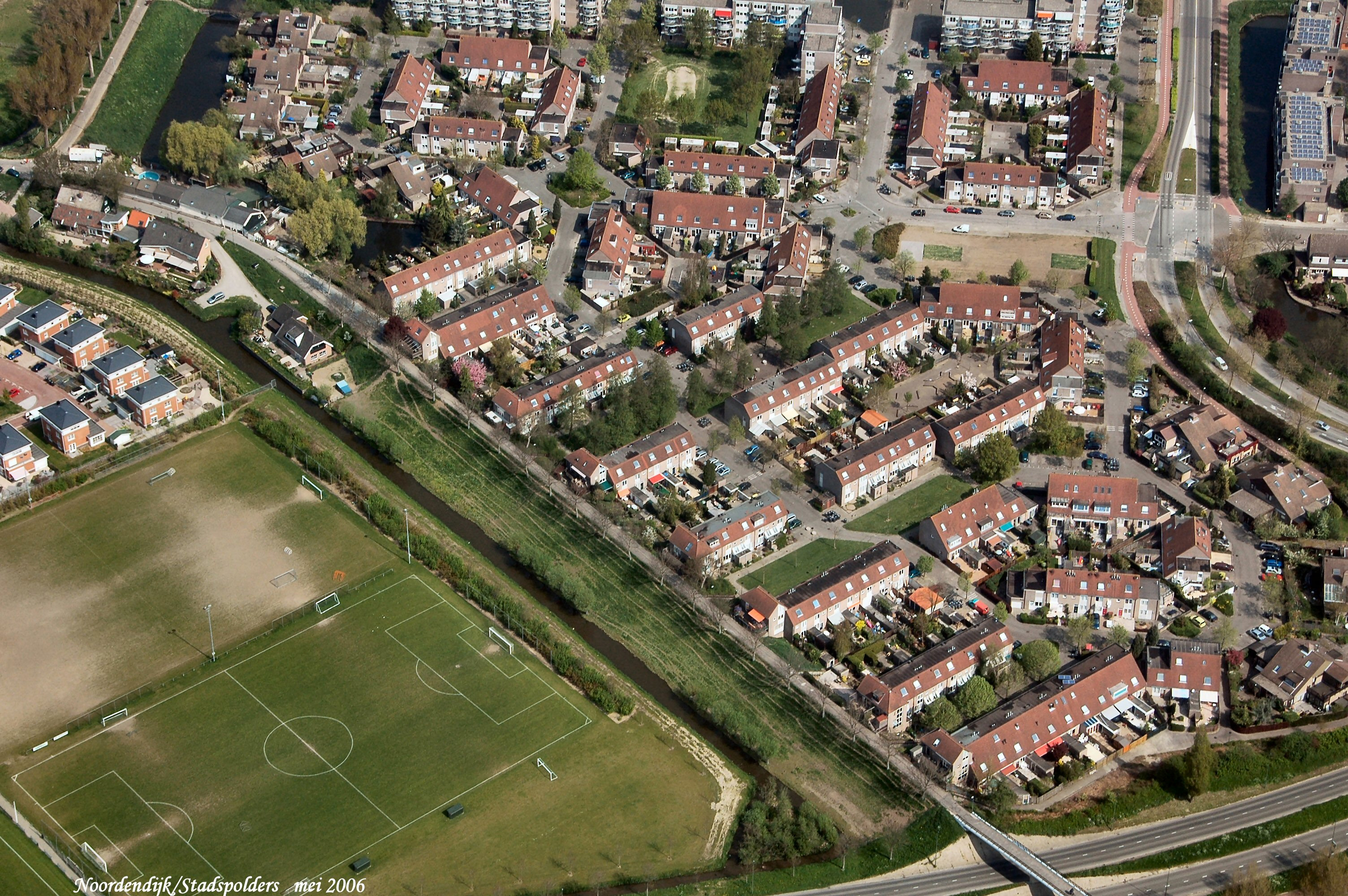 Stadspolder met links boven de Loswalweg. van links naar rechts is de Noordendijk. rechts onder is de Recklinghausenweg. rechts boven is de Stadspolderring gezien in Noord/Westelijke richting.