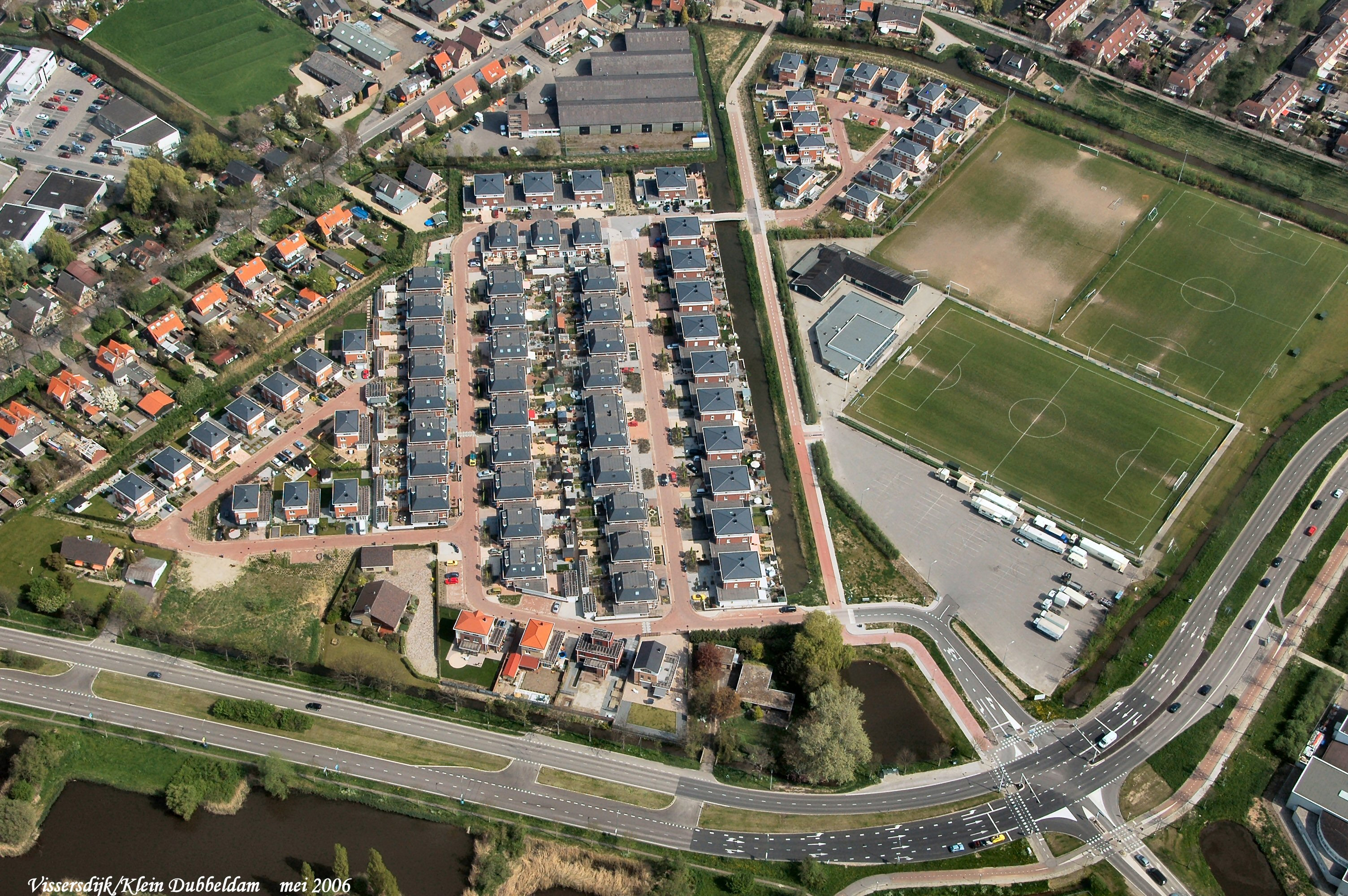 In het midden is de Visserstuin met links de Vissersdijk.links onder is de Provincialeweg, rechts boven is de Stadspolder met de Noordendijk. gezien in Noord/Westelijke richting.
