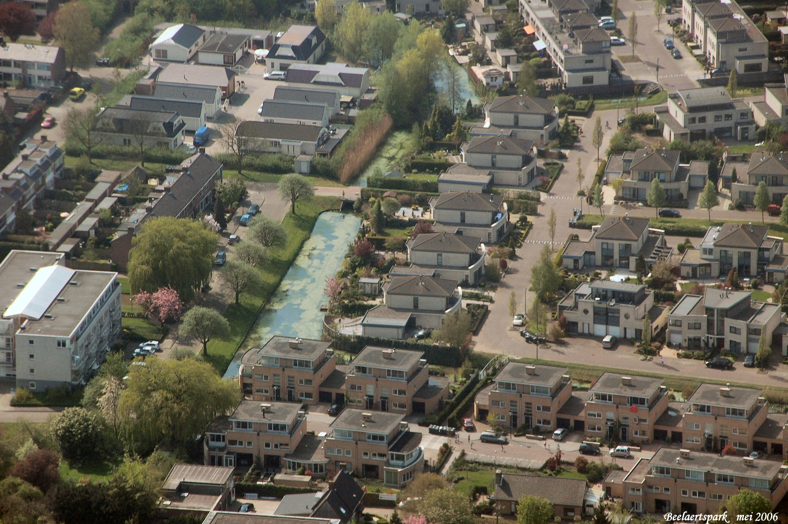 Beelaertspark met links de Vijverlaan. links onder nog een stukje van het Vijverplantsoen gezien in Zuidelijke richting.