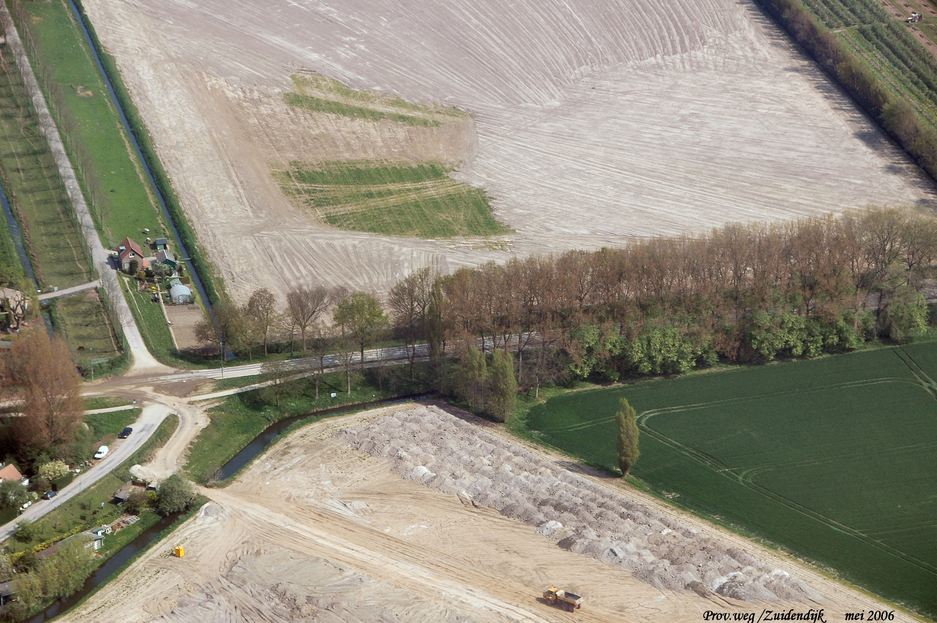 Links boven naar onder is de Zuidendijk met de |Provincialeweg van links naar rechts gezien in Noordelijke richting.