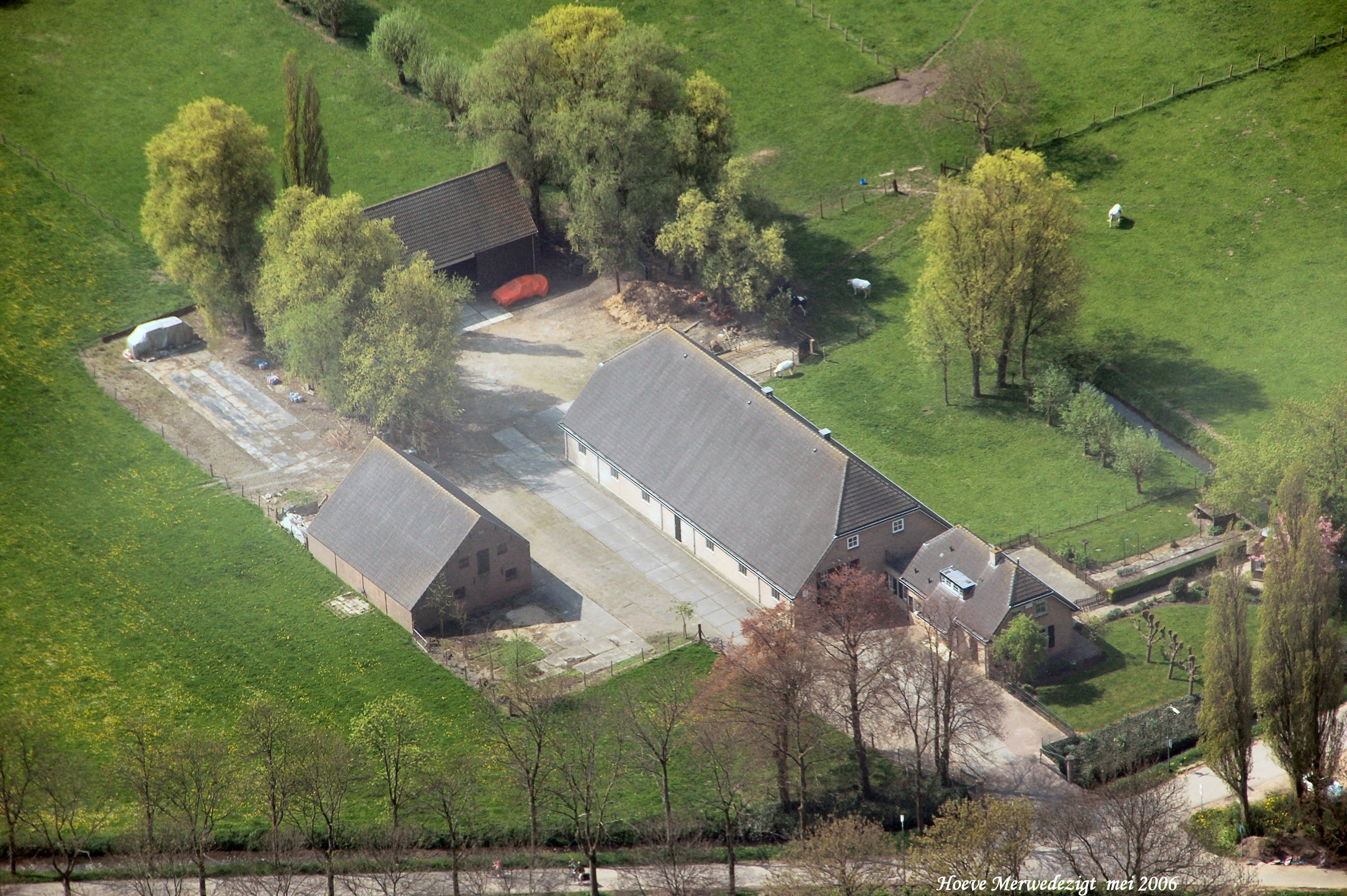 Hoeve "Merwedezicht" aan de Kromme Zandweg, tegenover de watertoren van Dubbeldam. De hoeve is op 22 juli 1990 door brand verloren gegaan, maar is weer herbouwd. gezien in Zuid/Westelijke richting.