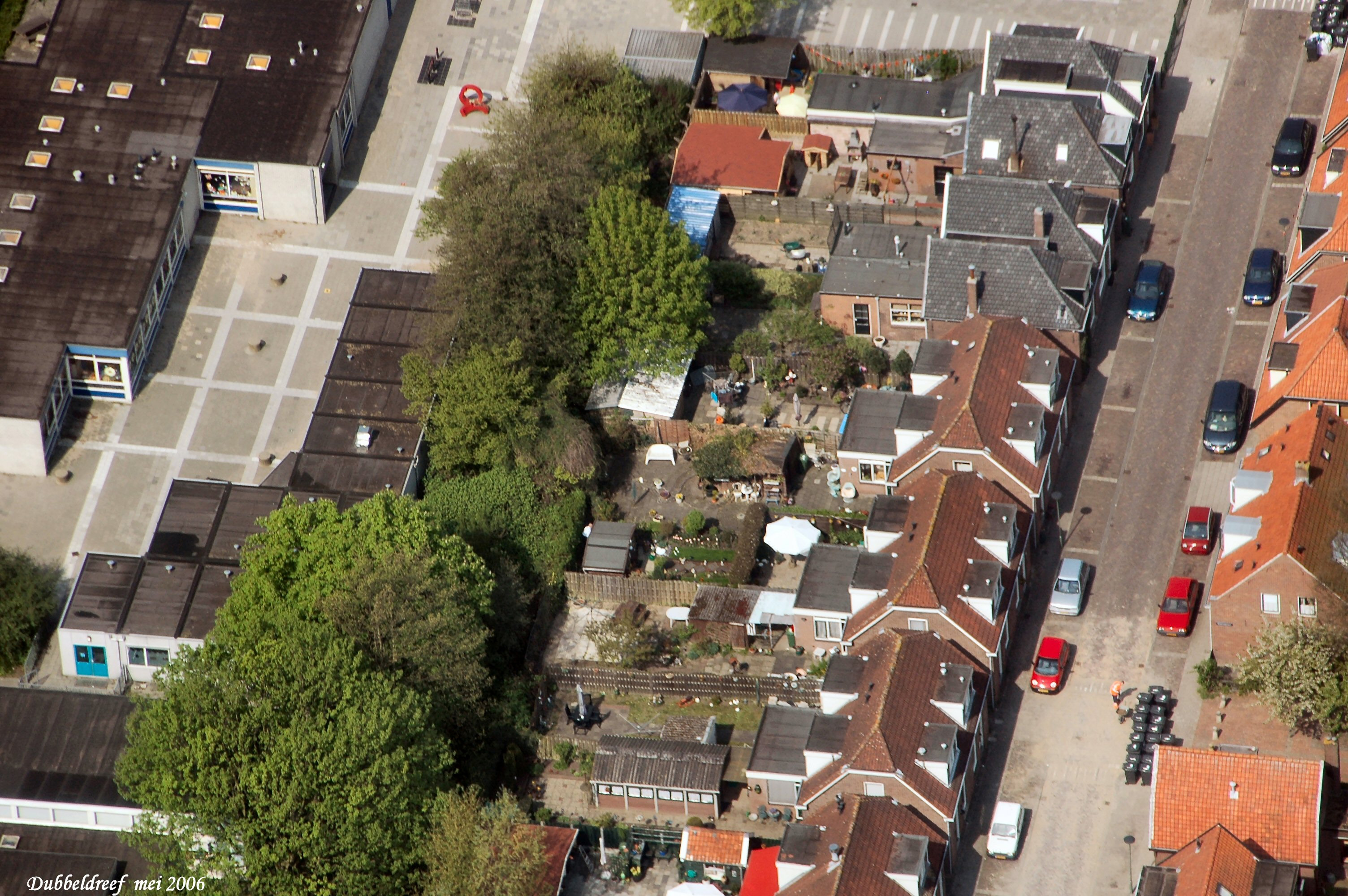 Rechts is de Dubbeldreef. links is de Beatrixschool gezien in Westelijke richting.