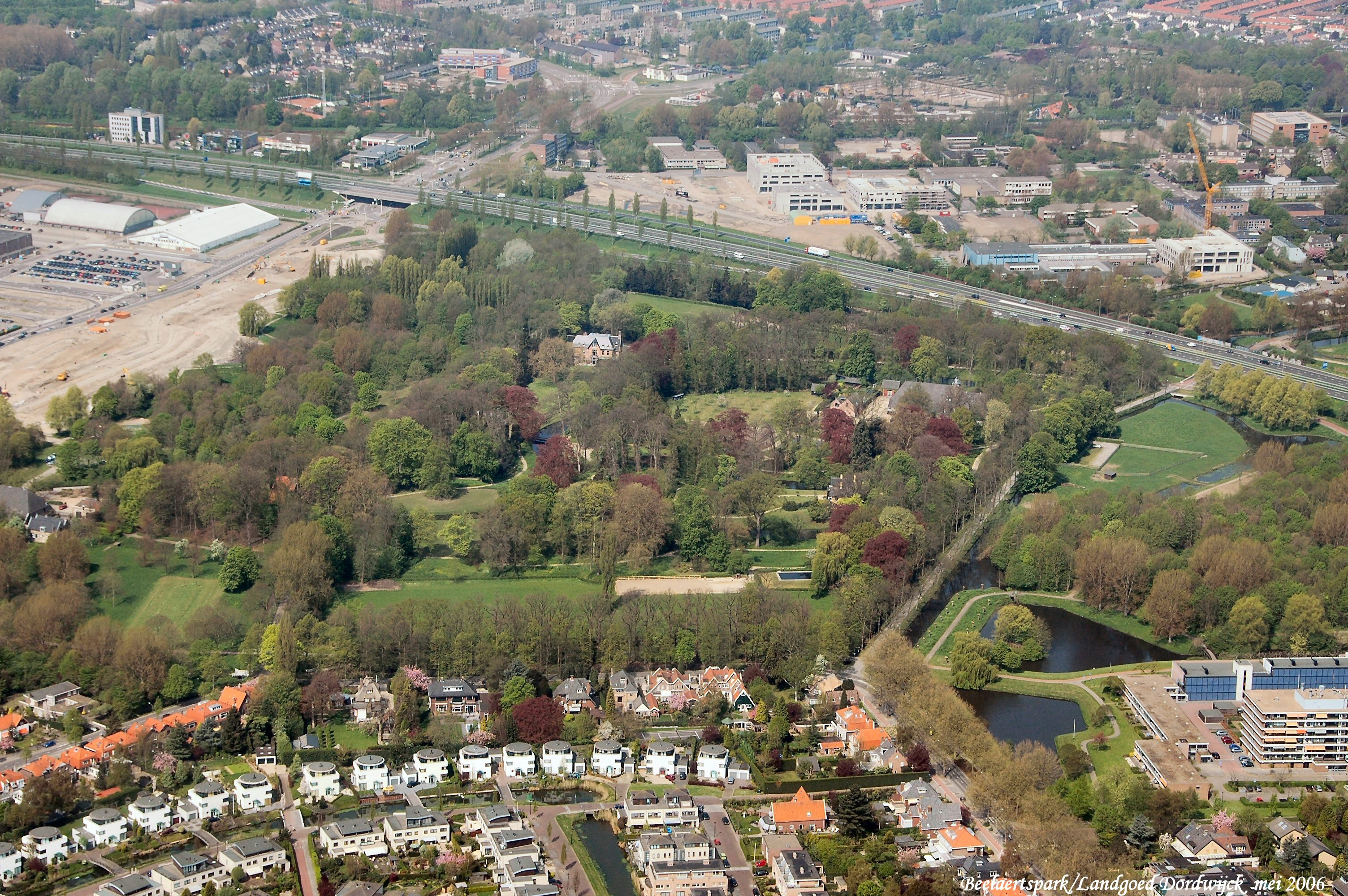 Onder is het Beelaertspark met de Burg.Jaslaan er boven. in het midden Landgoed Dordwijk. rechts onder is Dubbelmonde. mid.rechts naar links is de Rondweg. met het Leerpark er achter gezien in Westelijke richting.