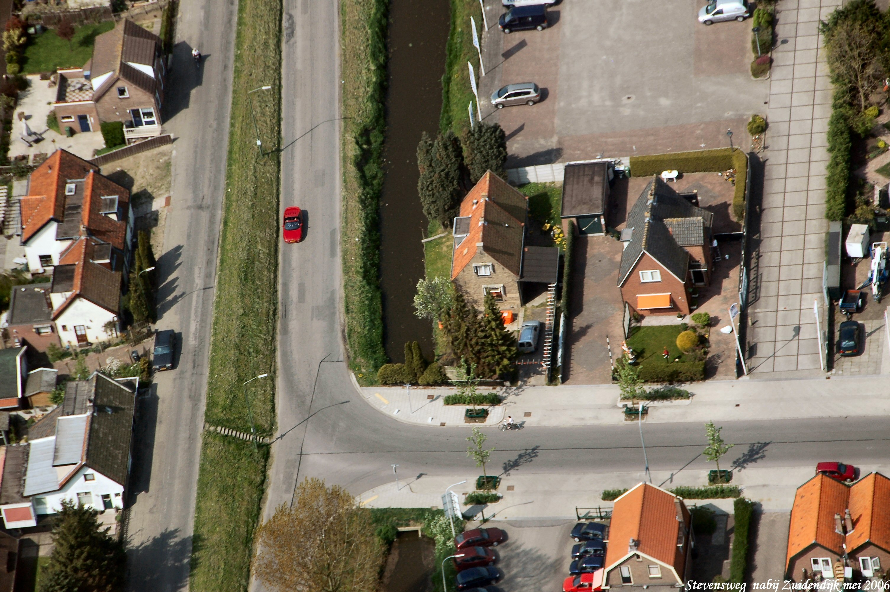 links is de Zuidendijk met rechts onder de Stevensweg gezien in Westelijke richting.