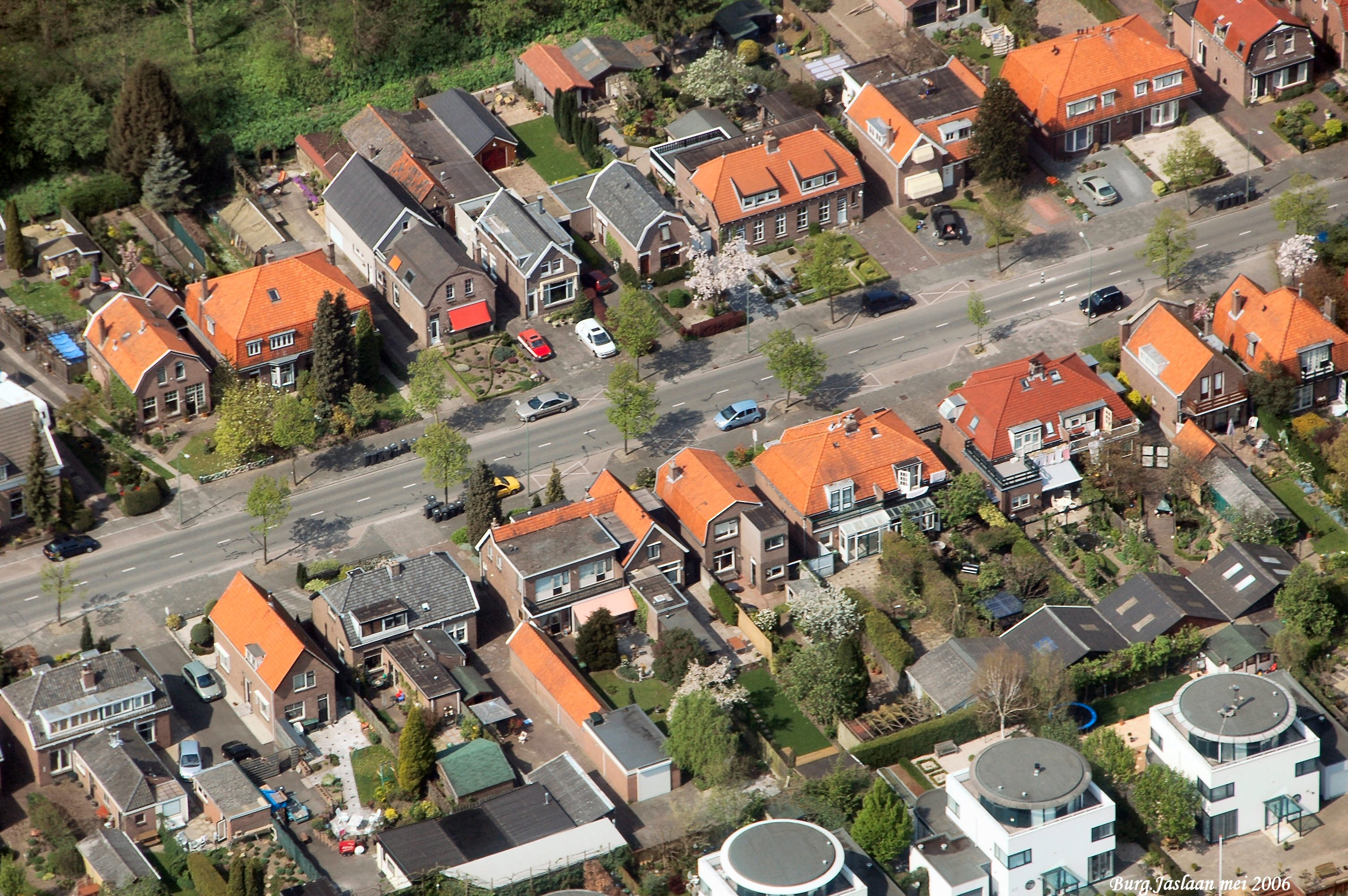 Burg.Jaslaan met rechts onder het Beelaertspark gezien in Westelijke richting.