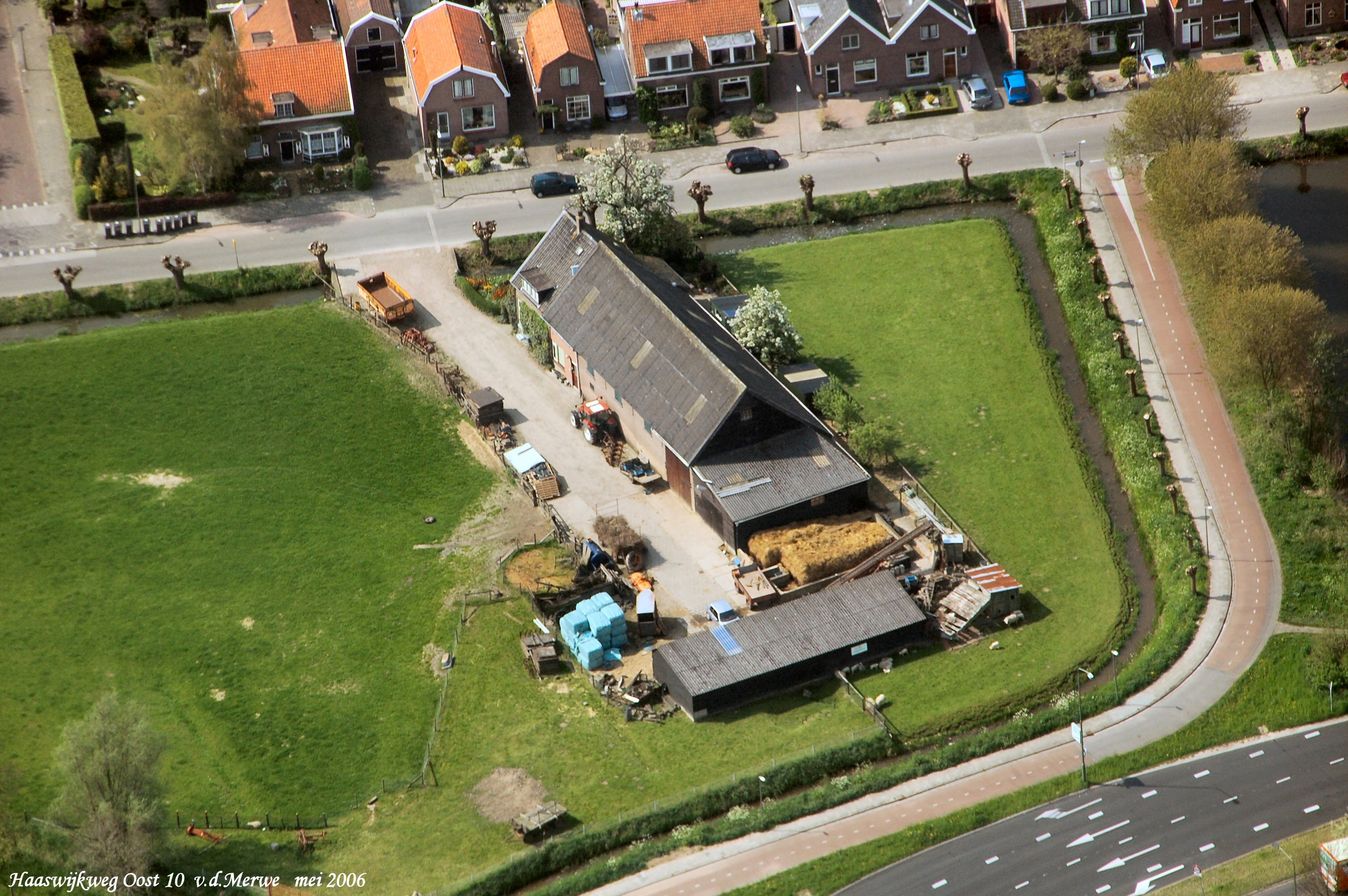 Boerderij van Fam. van de Merwe aan de Haaswijkweg Oost gezien in Zuidelijke richting.