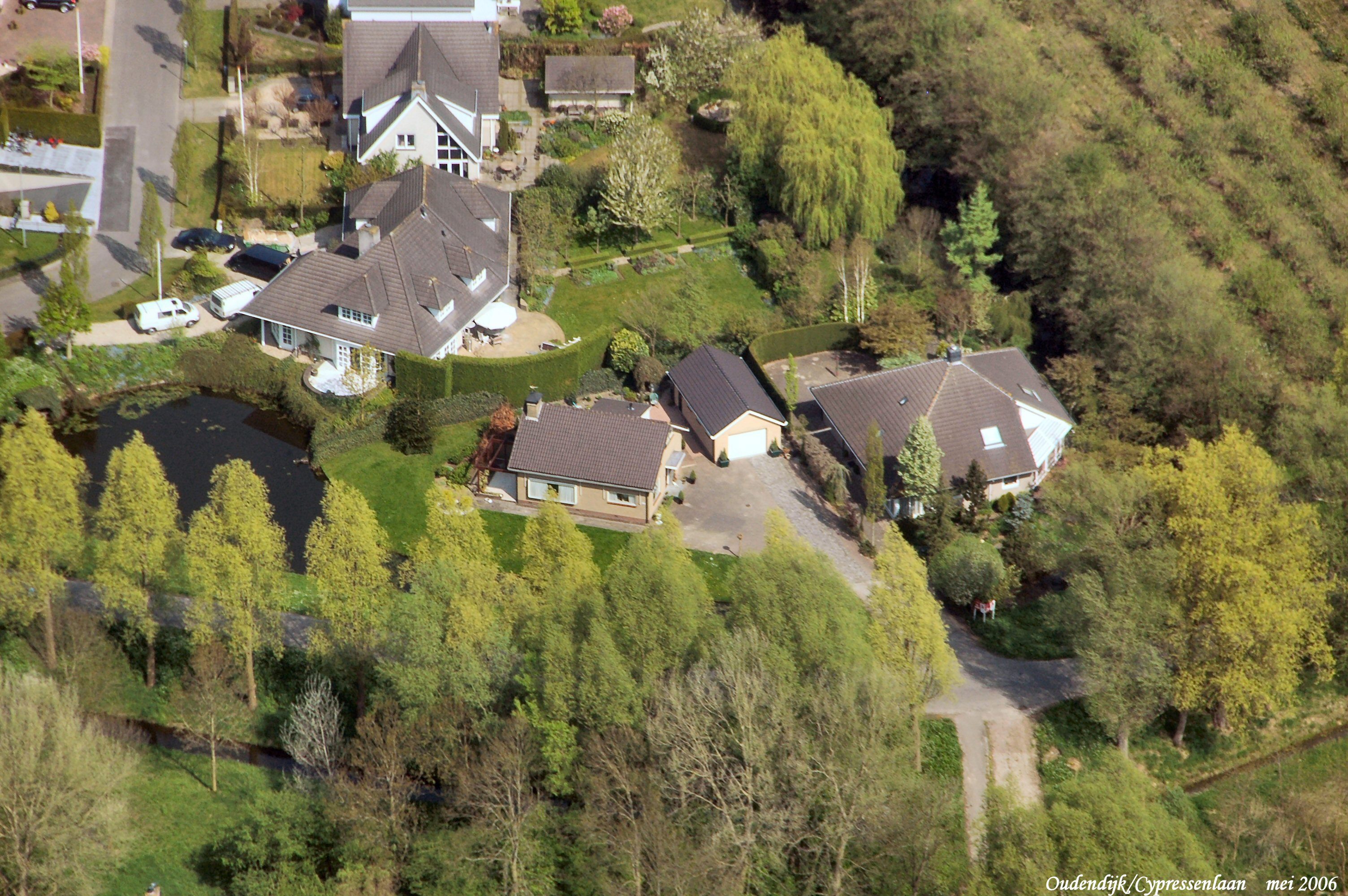 Onder is de Oudendijk met links boven de Cypressenlaan gezien in Noord/Westelijke richting.