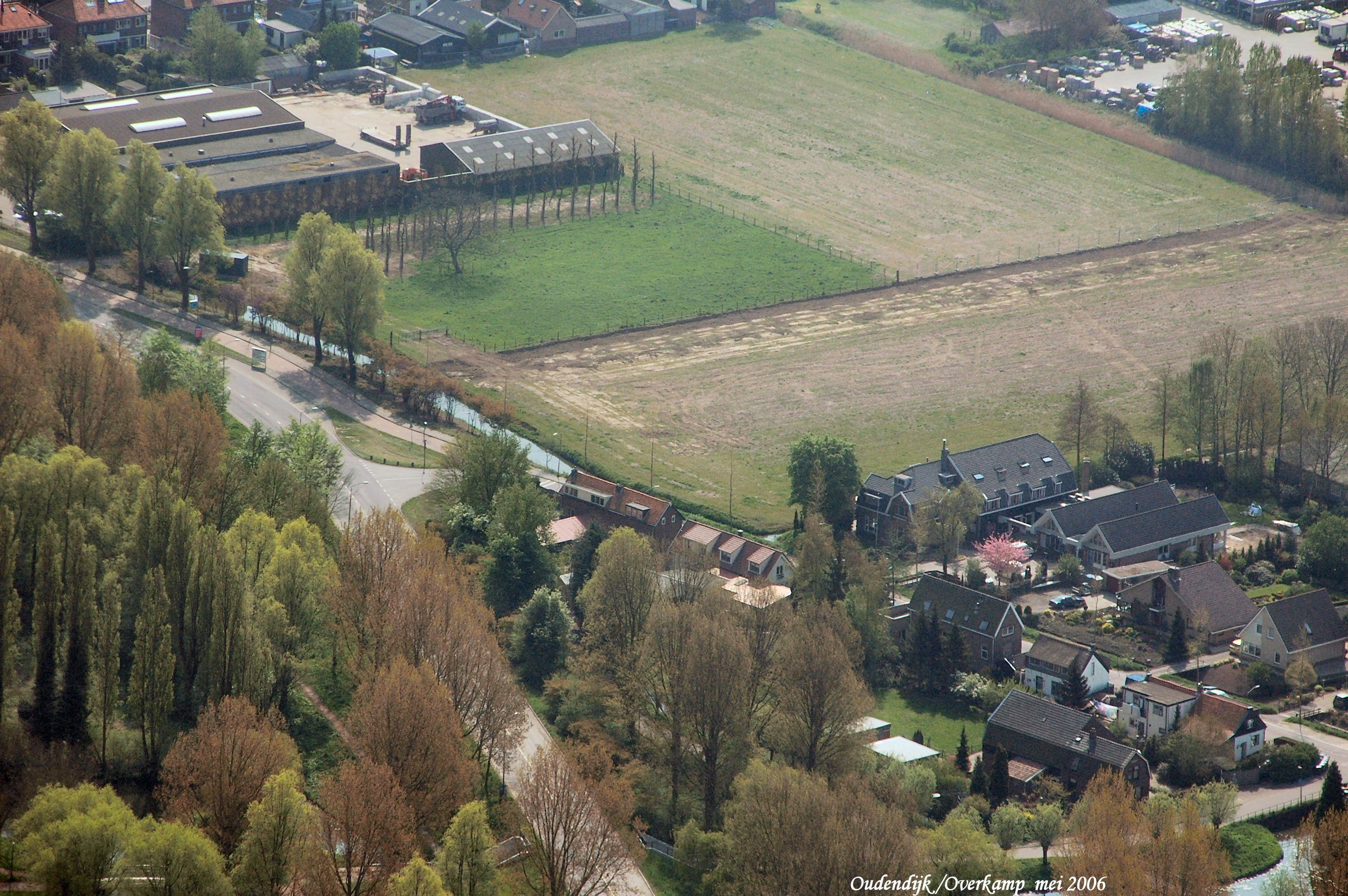 Oudendijk met de Overkampweg, links boven is de achterzijde van de Stevensweg. gezien in Zuid/Oostelijke richting.