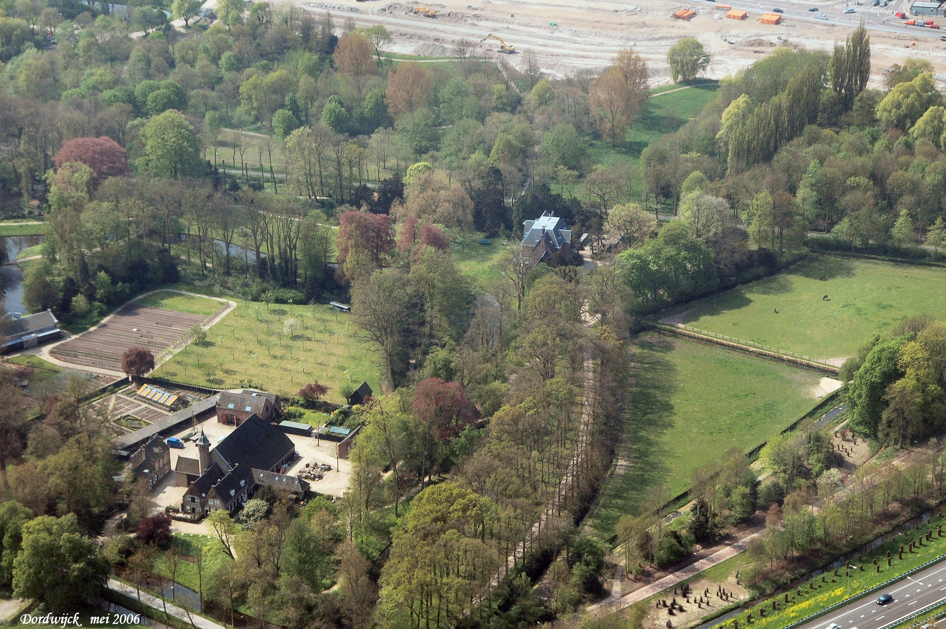Landgoed Dordwijk met mid.boven de Achterweg. links onder is de Dordwijklaan en rechts onder is de Rondweg gezien in Zuidelijke richting.