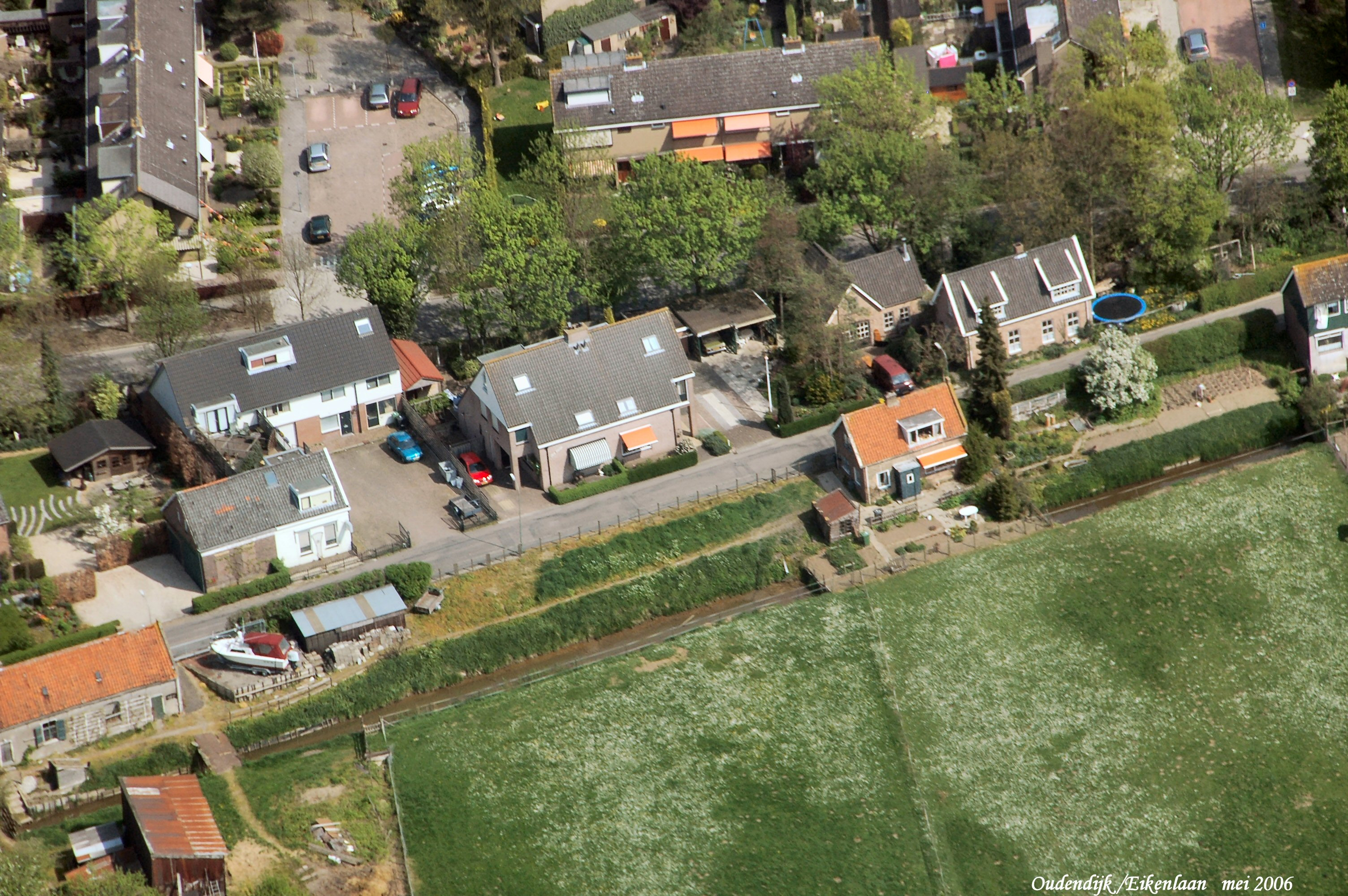 Oudendijk met de Eikenlaan er boven gezien in Noordelijke richting.