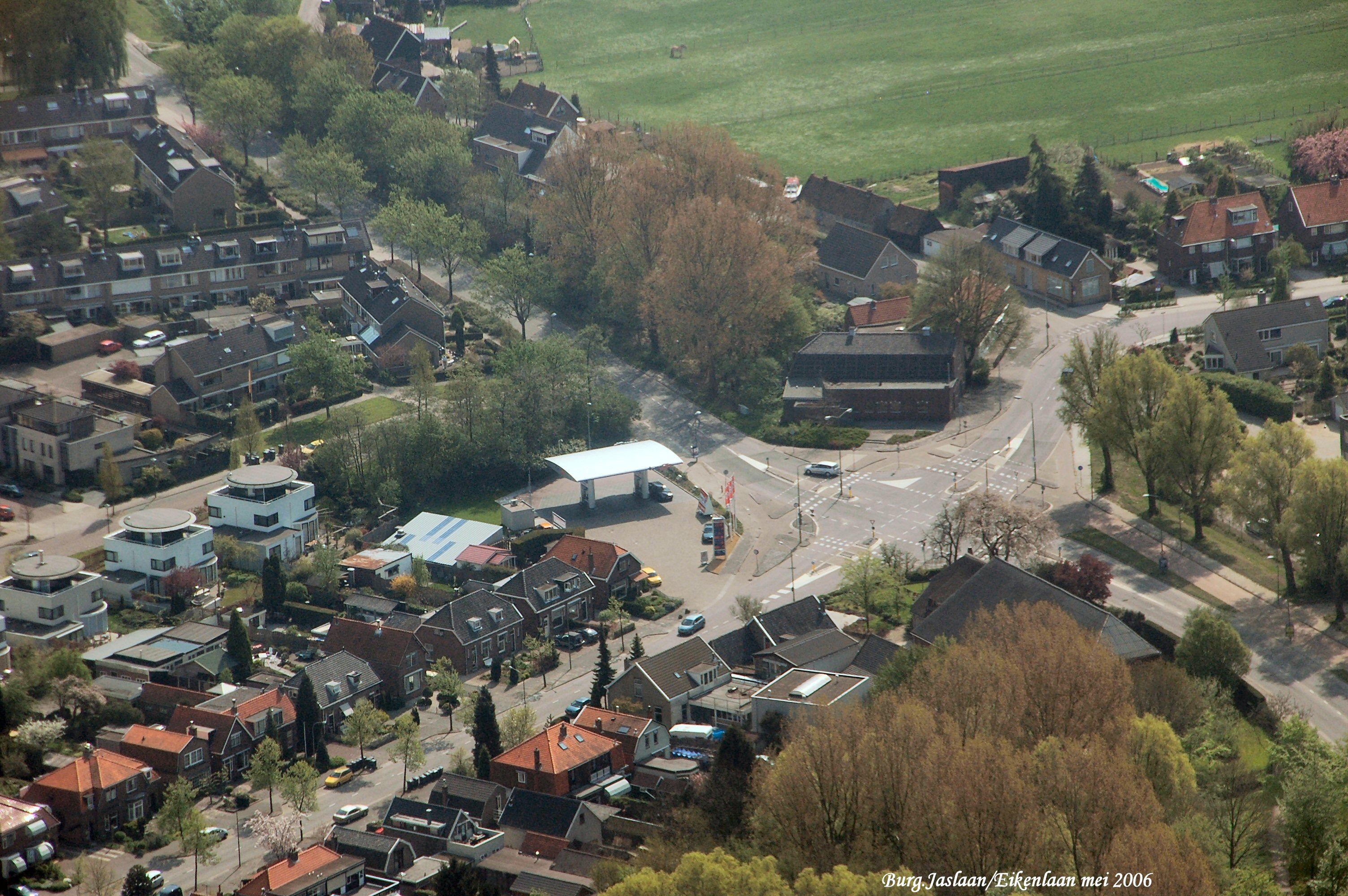 Links onder is de Burg.Jaslaan met de Stevensweg rechts boven.rechts onder is de Oudendijk. links boven is de Eikenlaan met de Oudendijk er boven gezien in Zuid/Oostelijke richting.