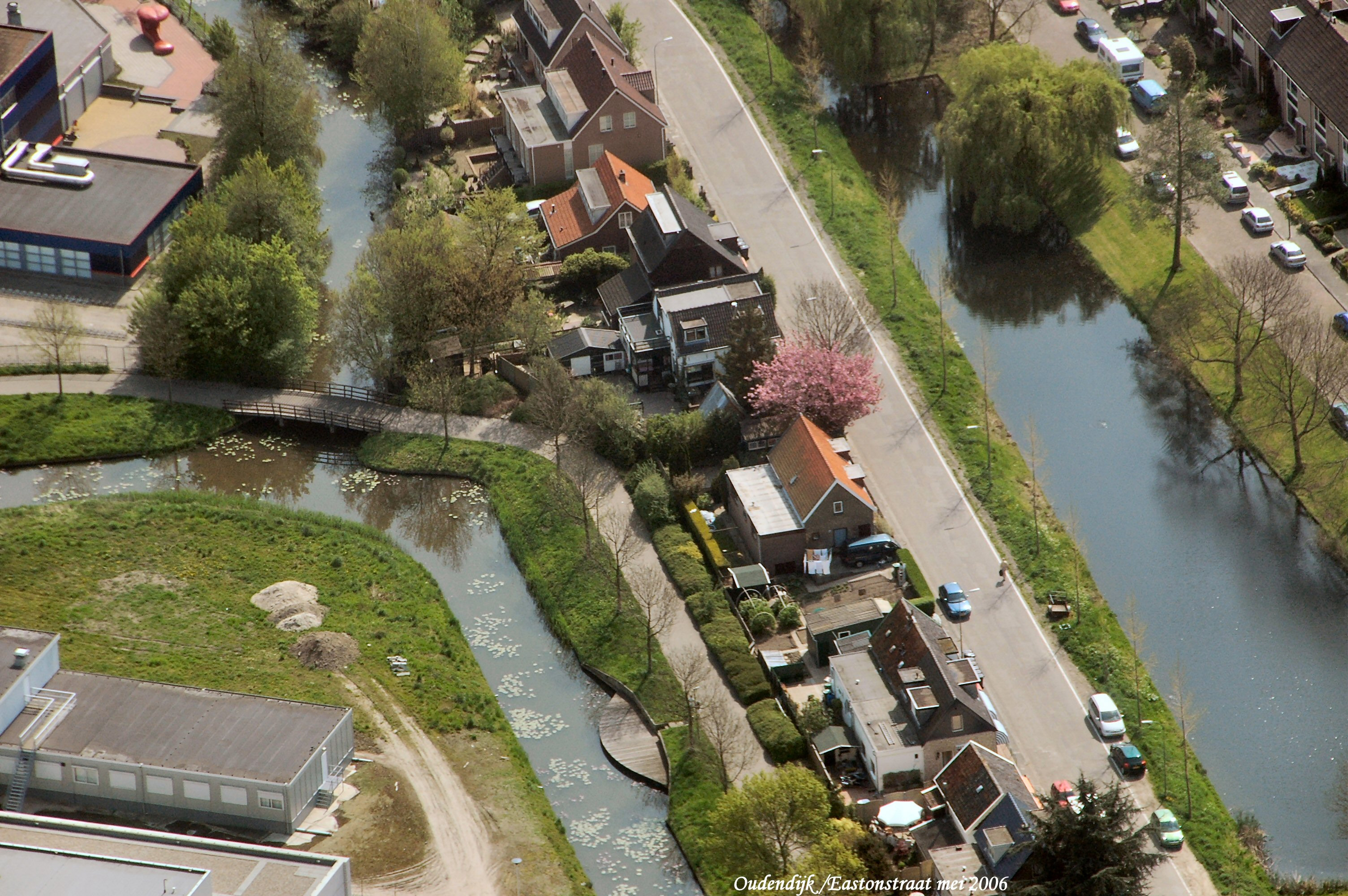 Oudendijk met rechts de Eastonstraat gezien in oostelijke richting.